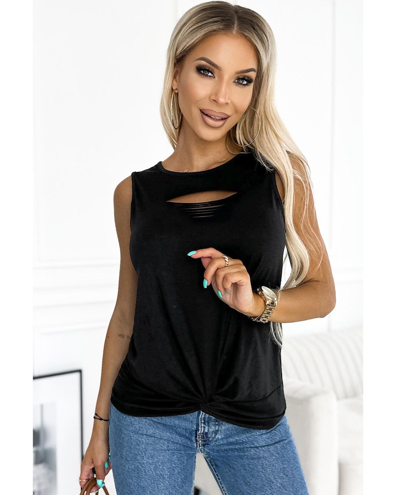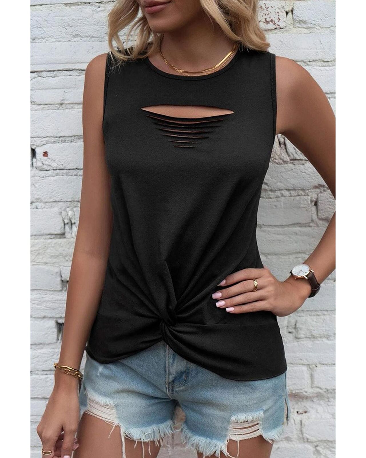 • cut slits and twist front design for visual interest