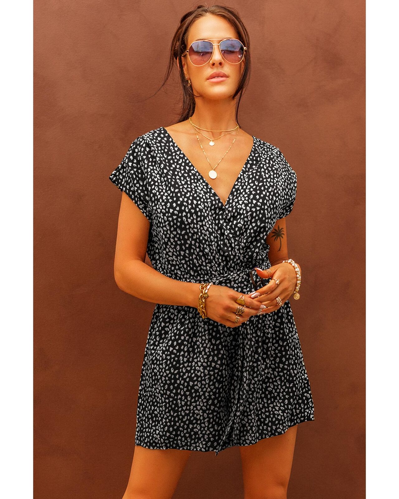 • Leopard print decorates the black base