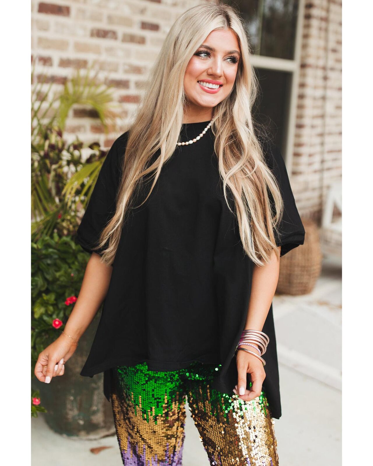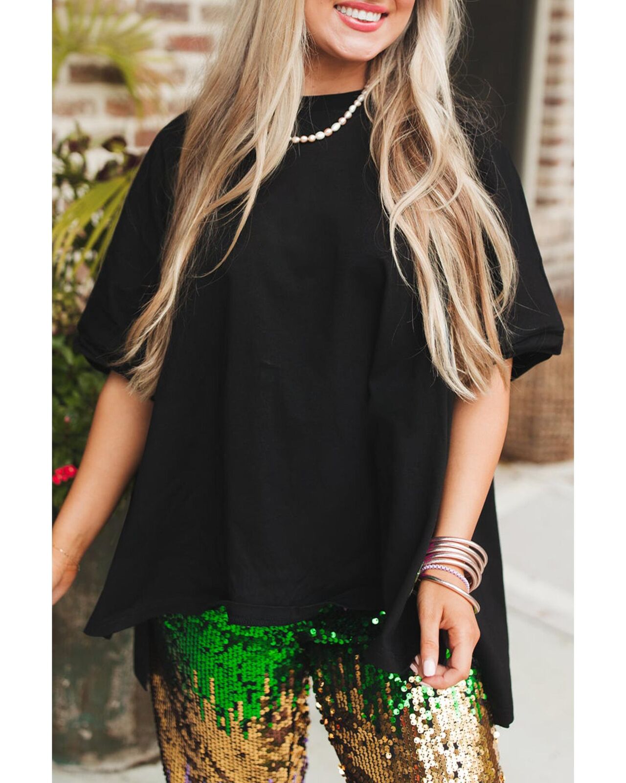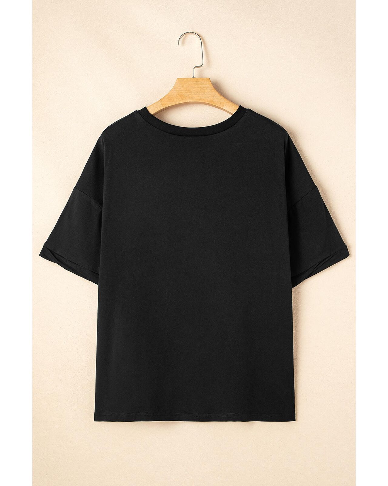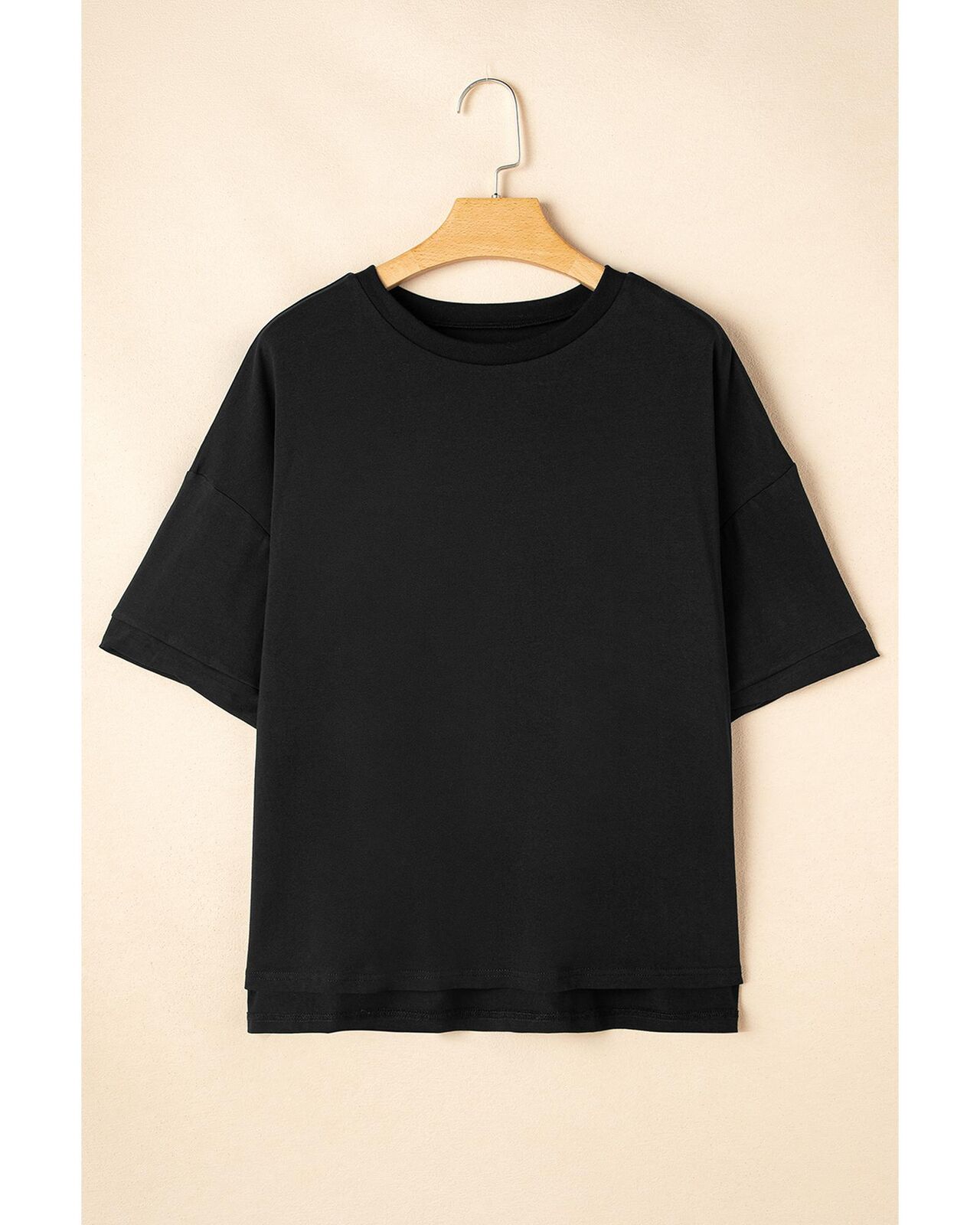 • Black Loose Half Sleeve Hi Low Hem T Shirt