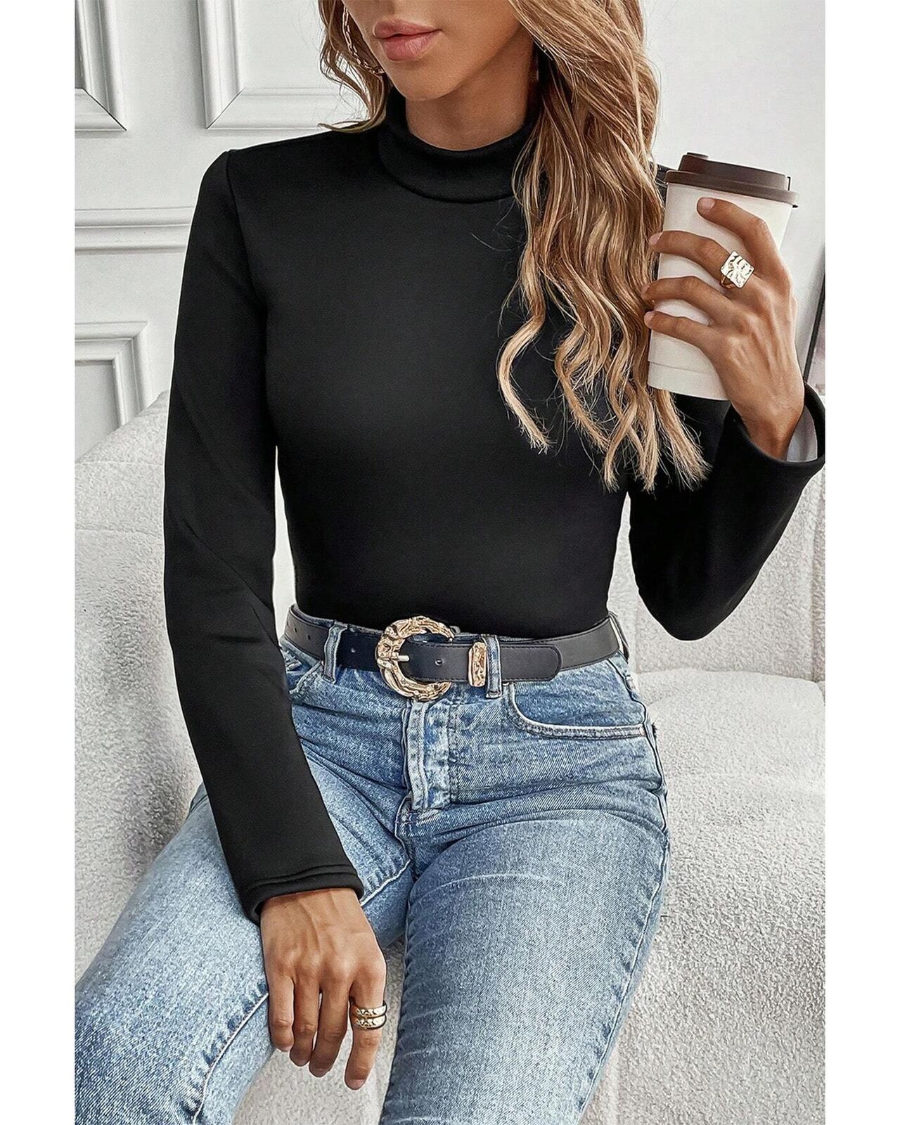 • Mock neck design for a stylish look