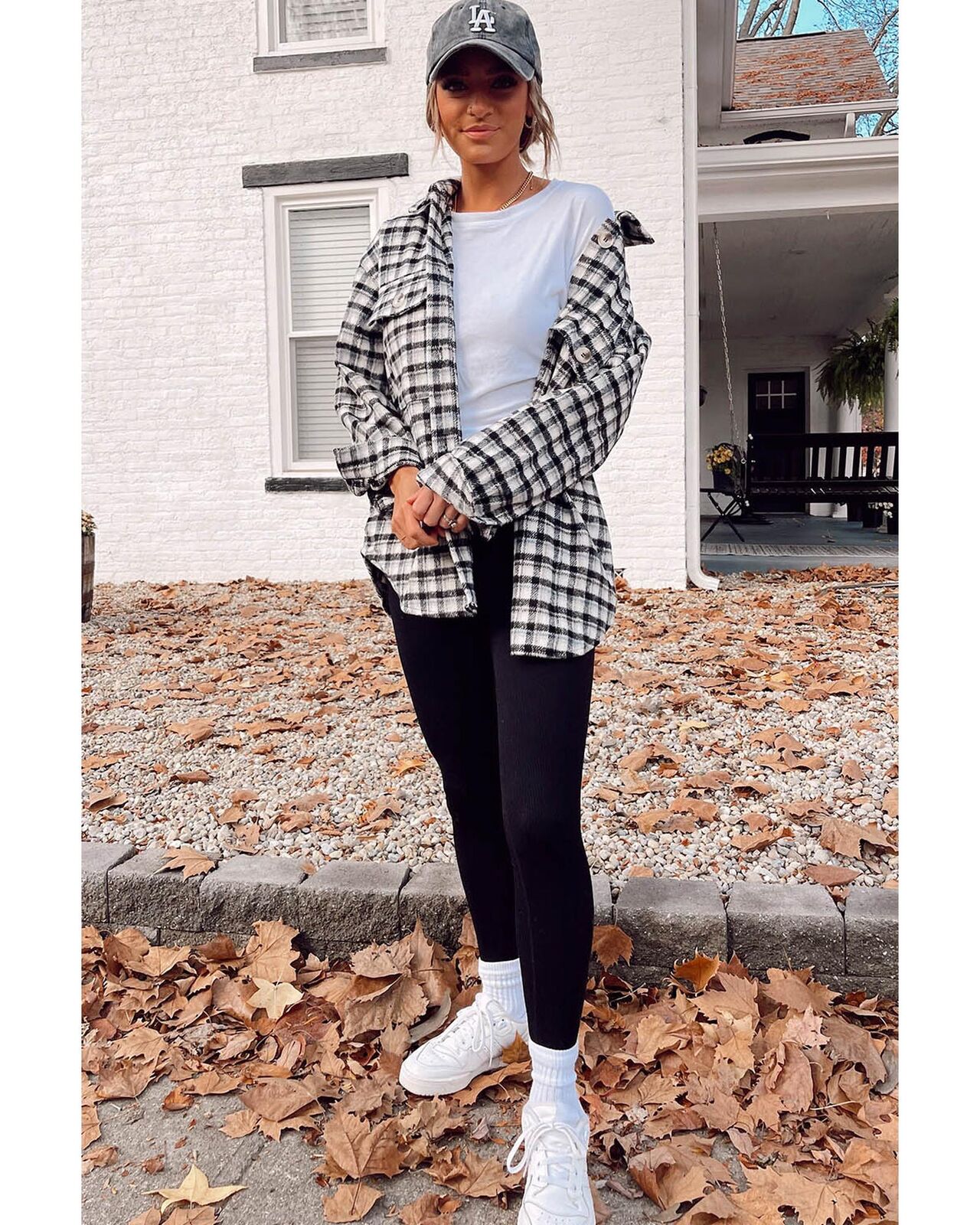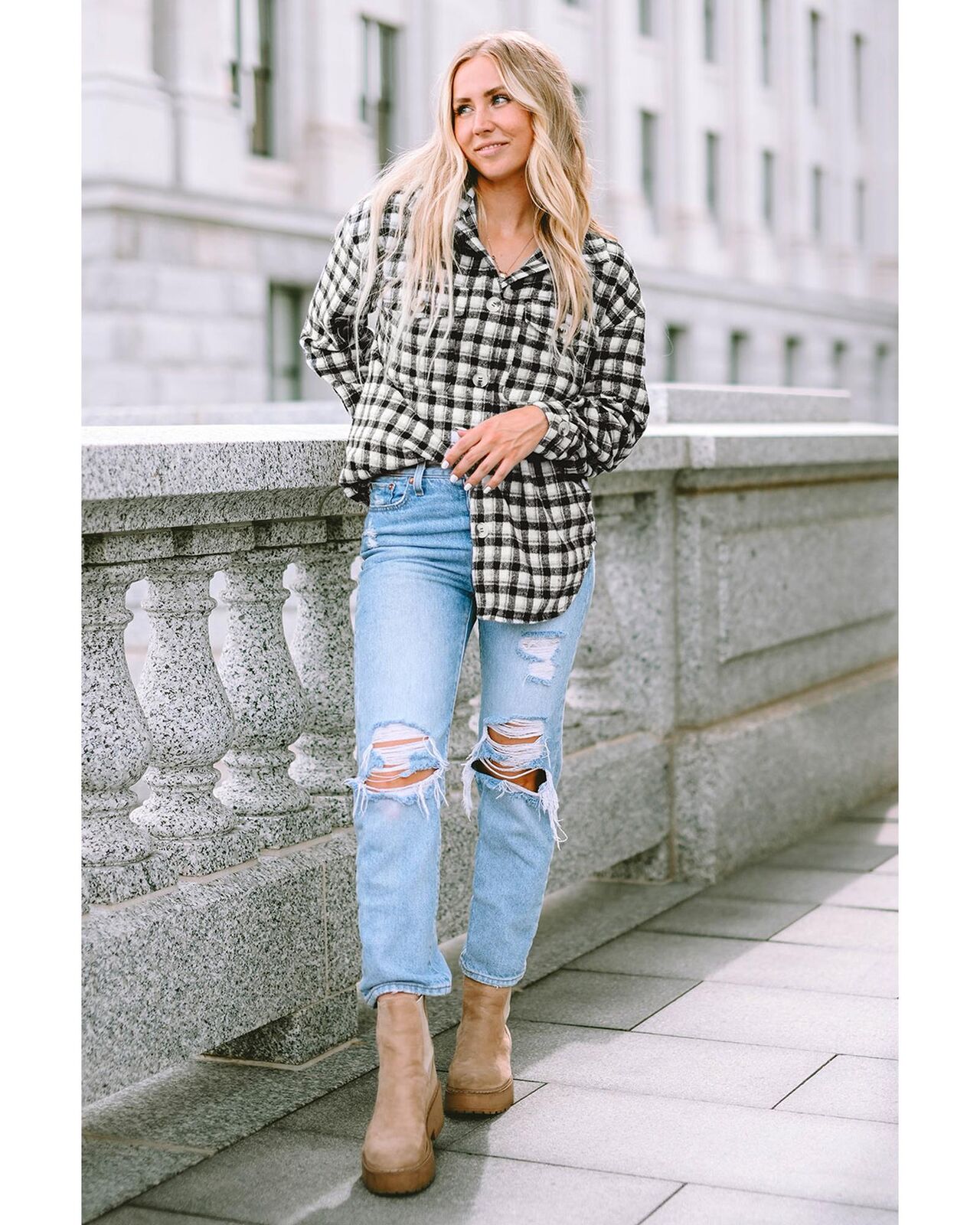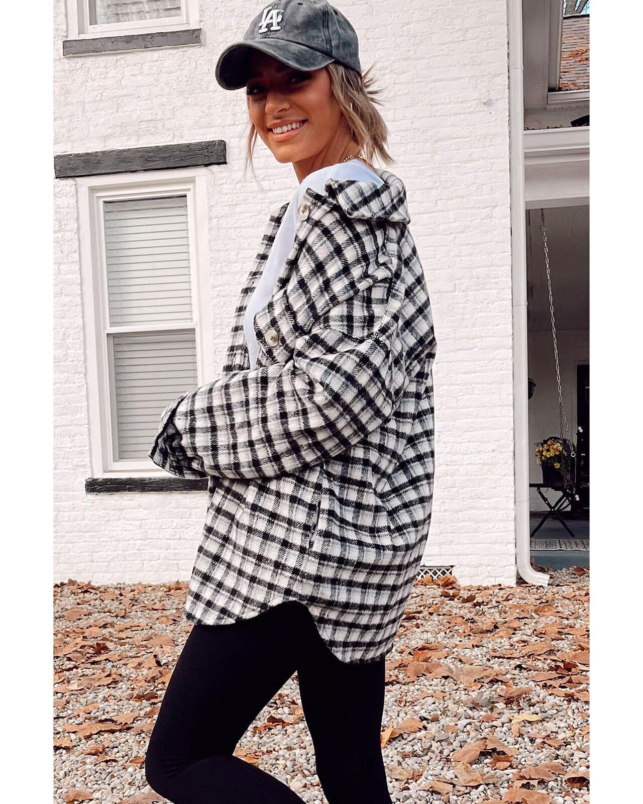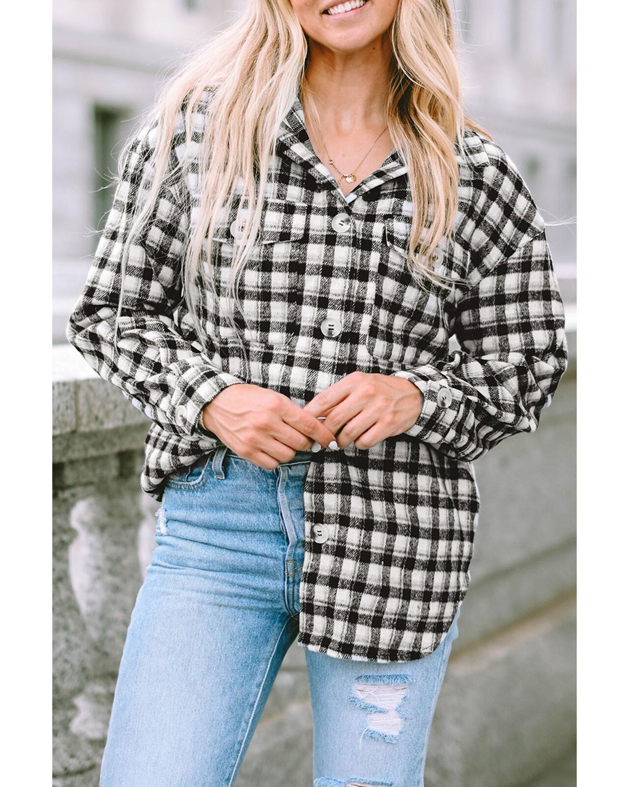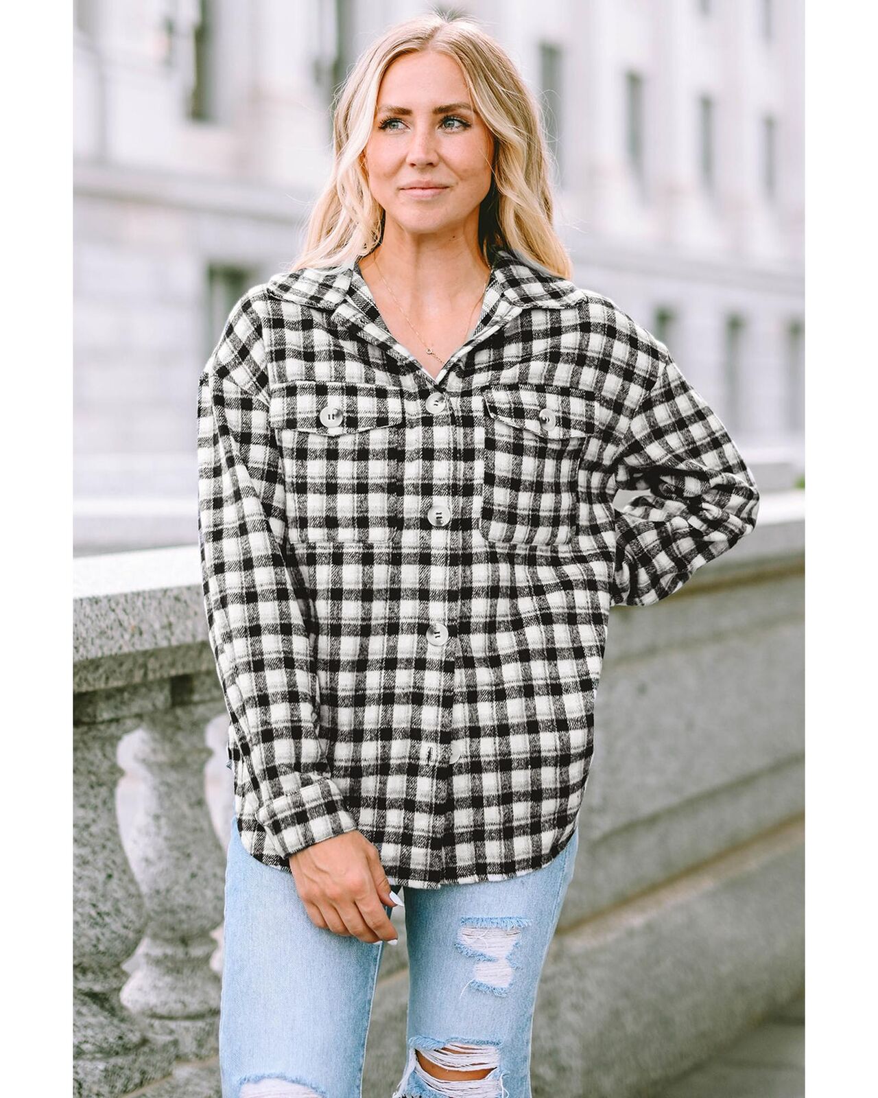 • Stylish black plaid print tunic shacket