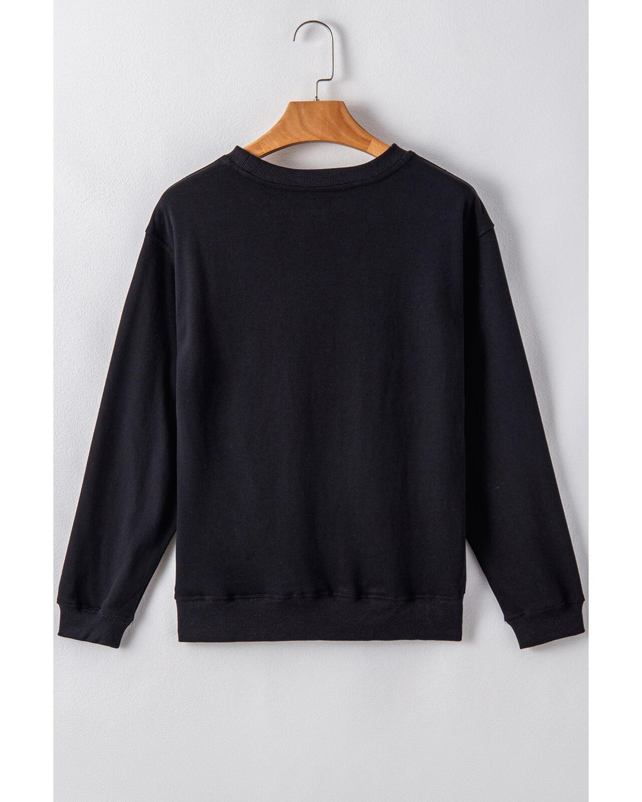 • Black plain drop shoulder crewneck pullover sweatshirt
