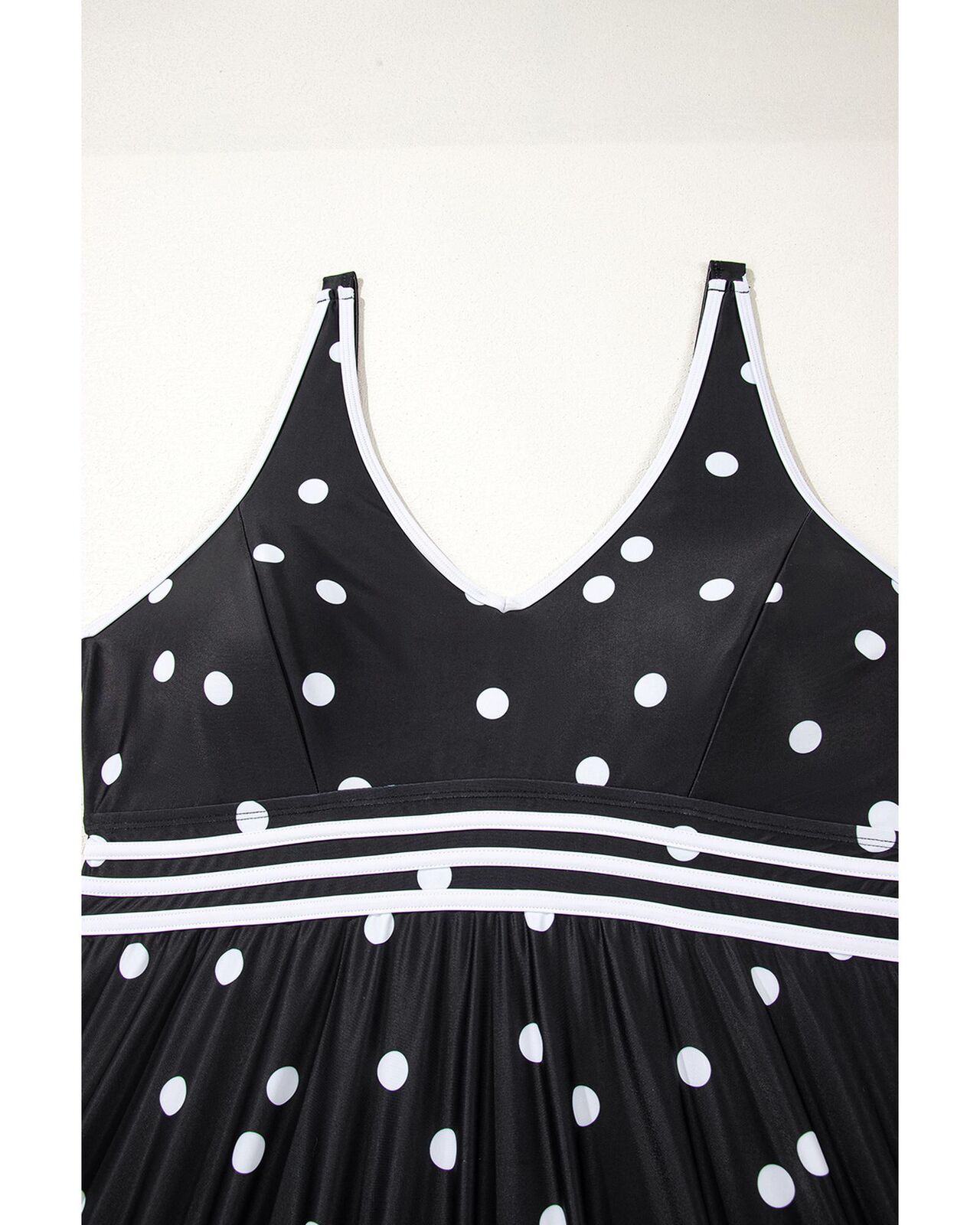 • Playful polka dot and colorblock trim design