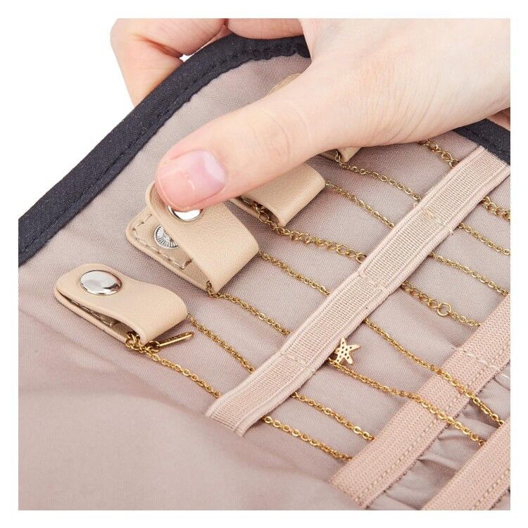 - Compact and Foldable Design: Rolls up into a compact size (22 x 13 x 2 cm) for easy portability and unfolds (33.5 x 22 cm) for convenient access to your jewelry.
