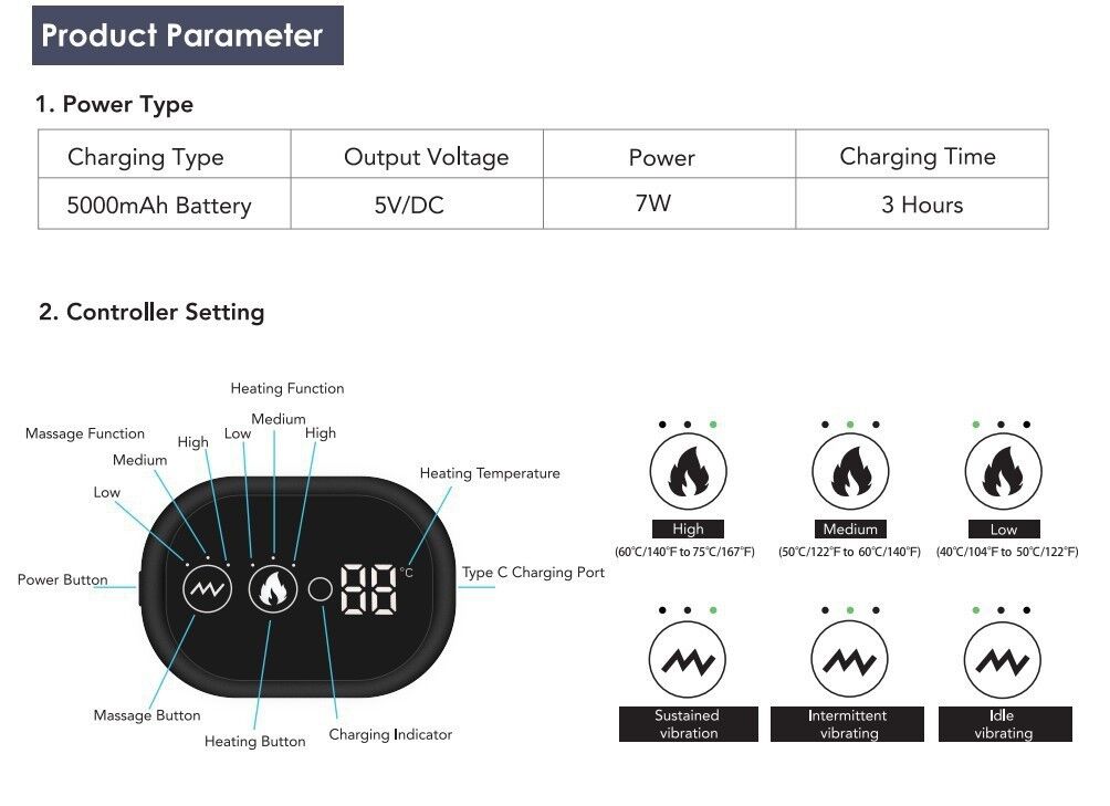 - Customizable Heat Therapy: Three temperature settings (40°C/104°F to 75°C/167°F) for tailored comfort.