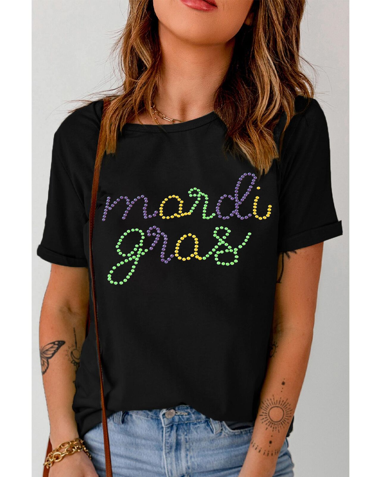 • Black Rhinestone Mardi Gras Letter Graphic T
