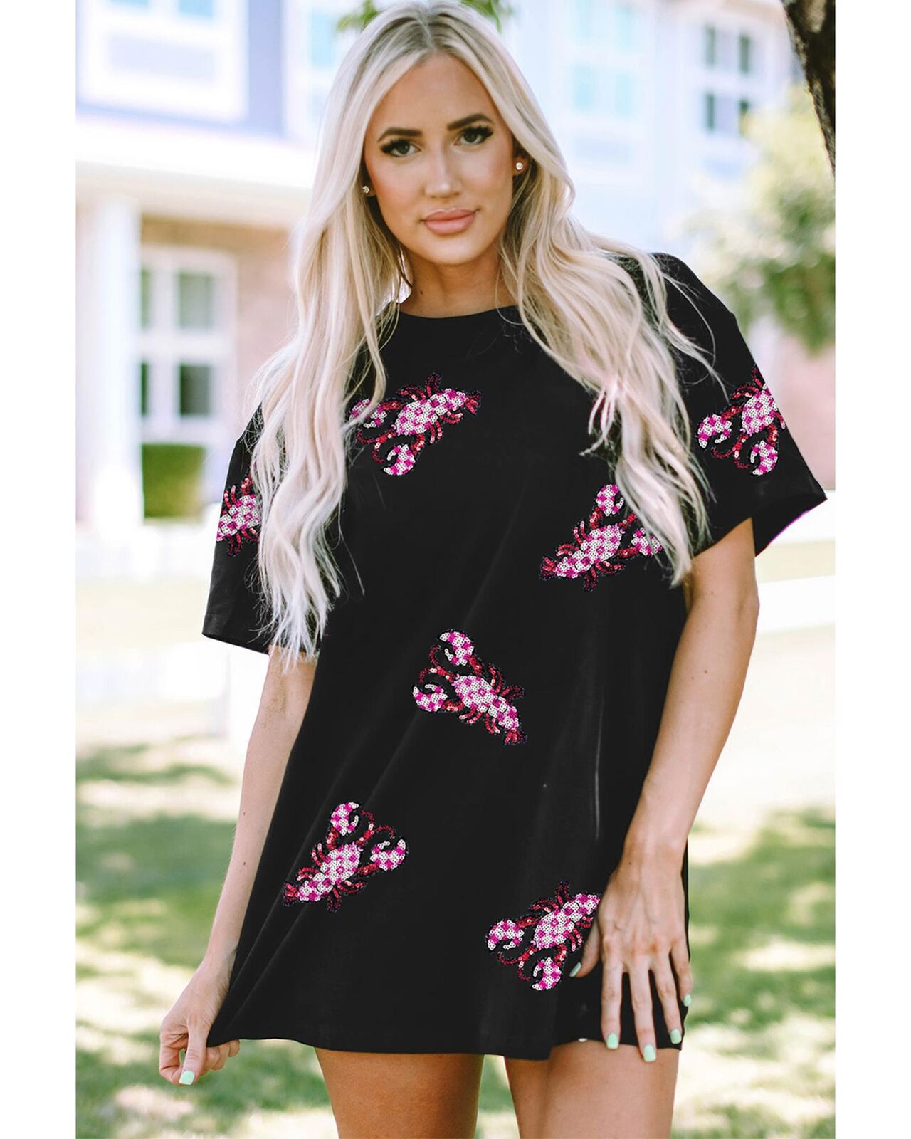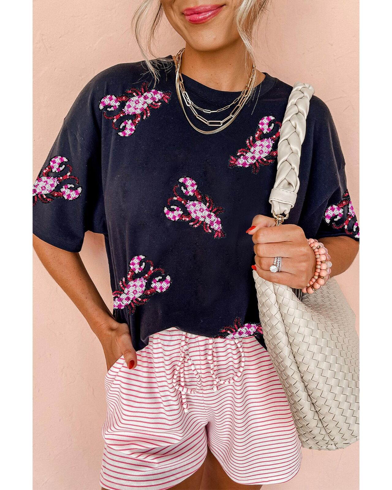 • Sequin patched graphic of crawfish patterns