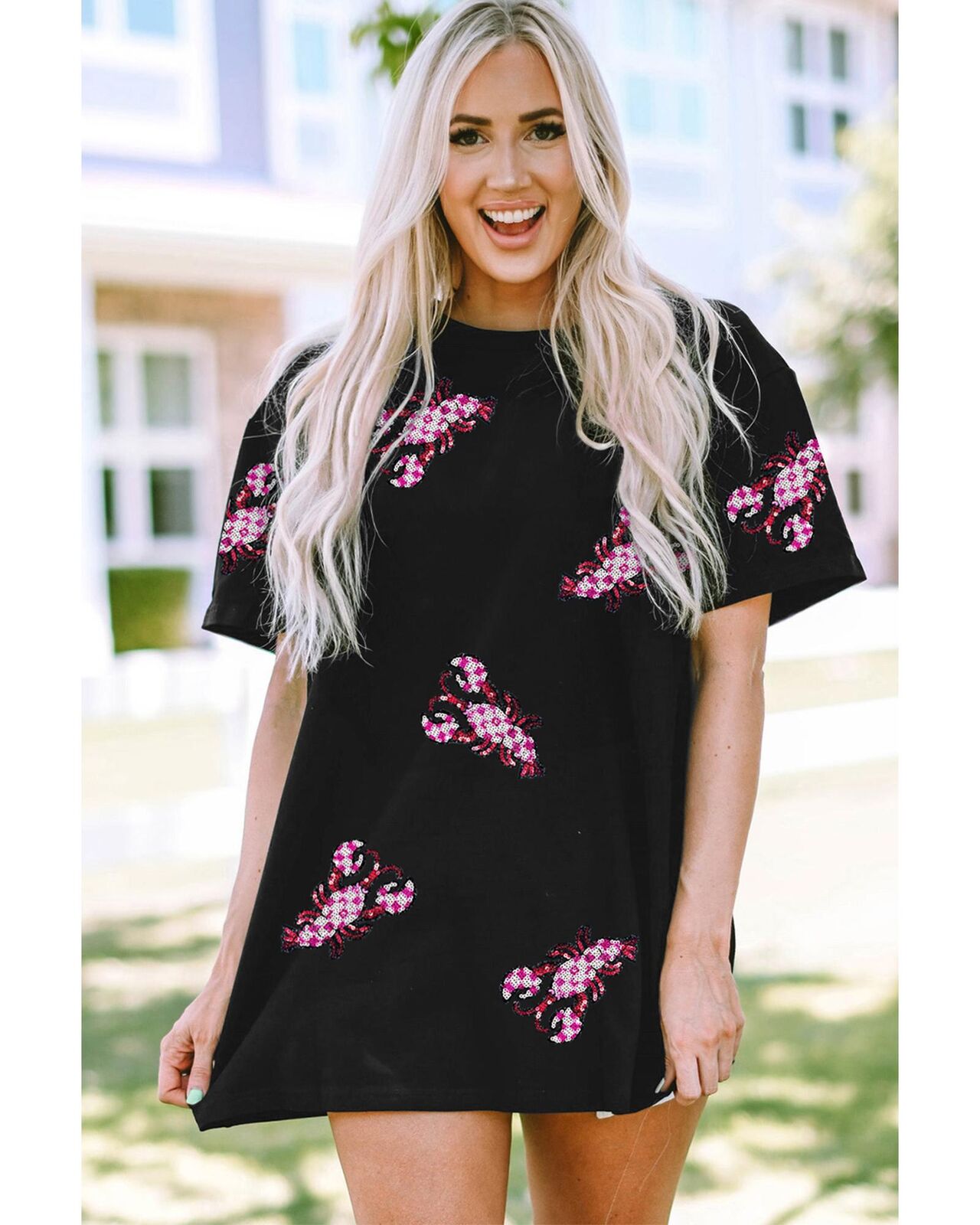 • Black Sequin Crawfish Patched Crew Neck Tee