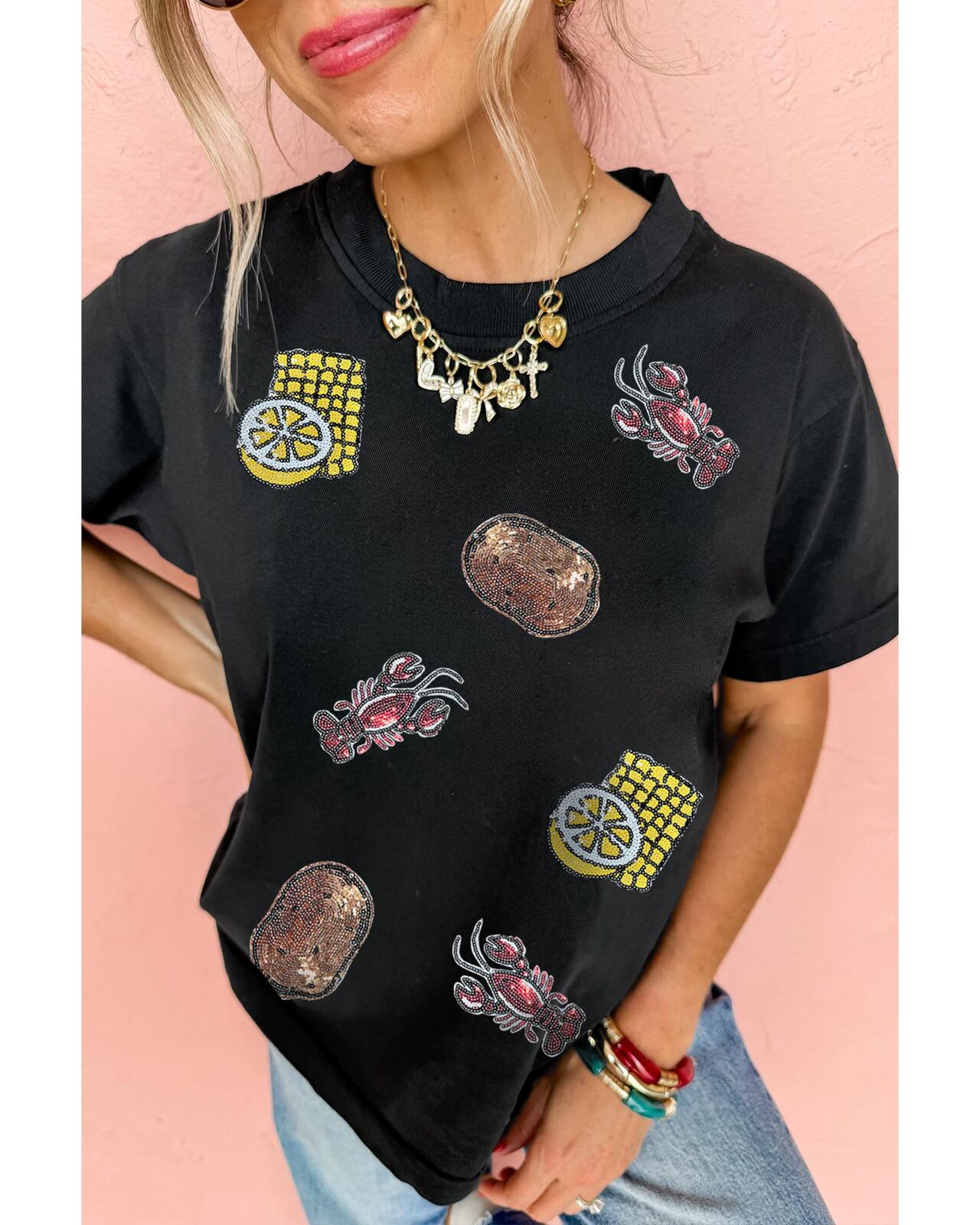 • Playful graphic featuring crawfish corn lemon and potatoes