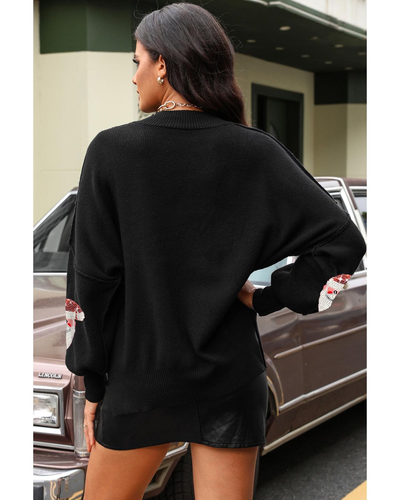 • Luxurious Black Sequined Santa Clause Bishop Sleeve Sweater