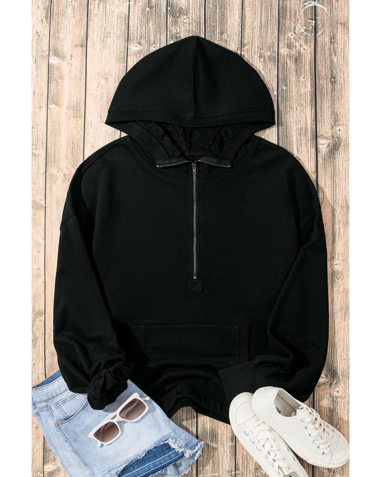 • Black solid hoodie