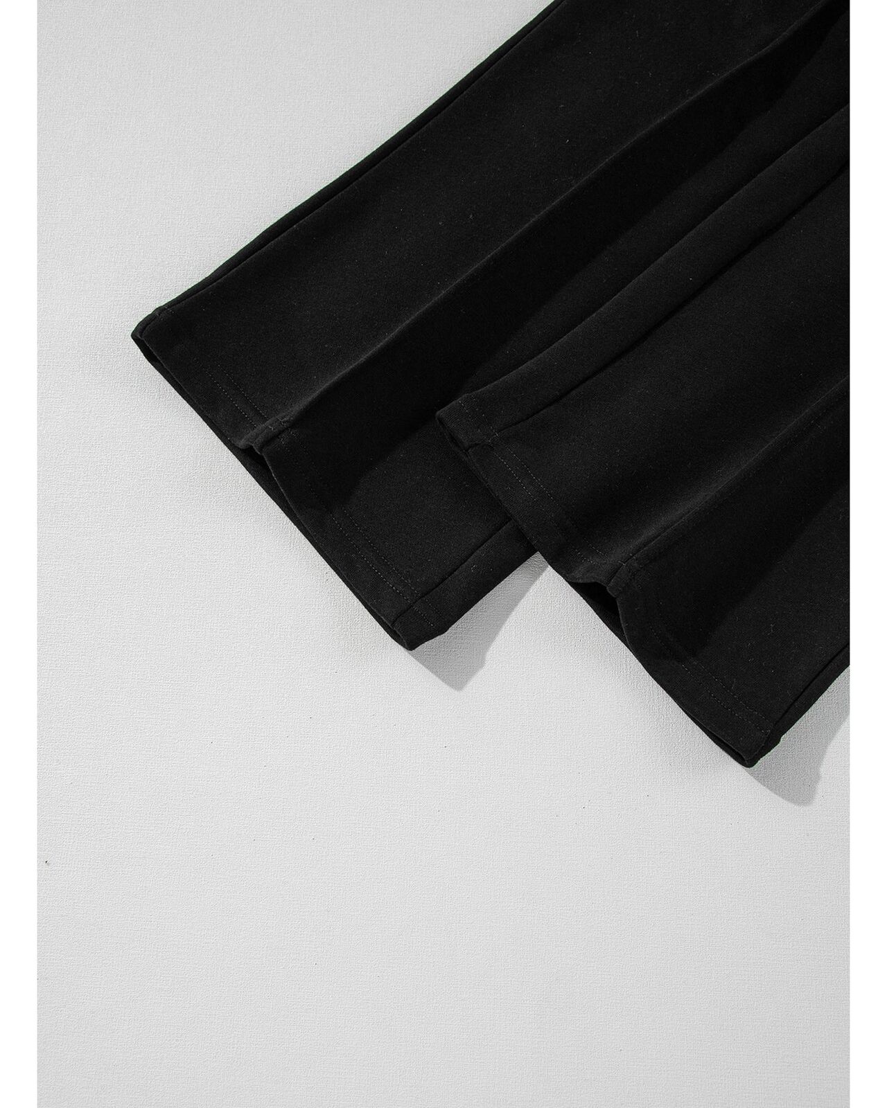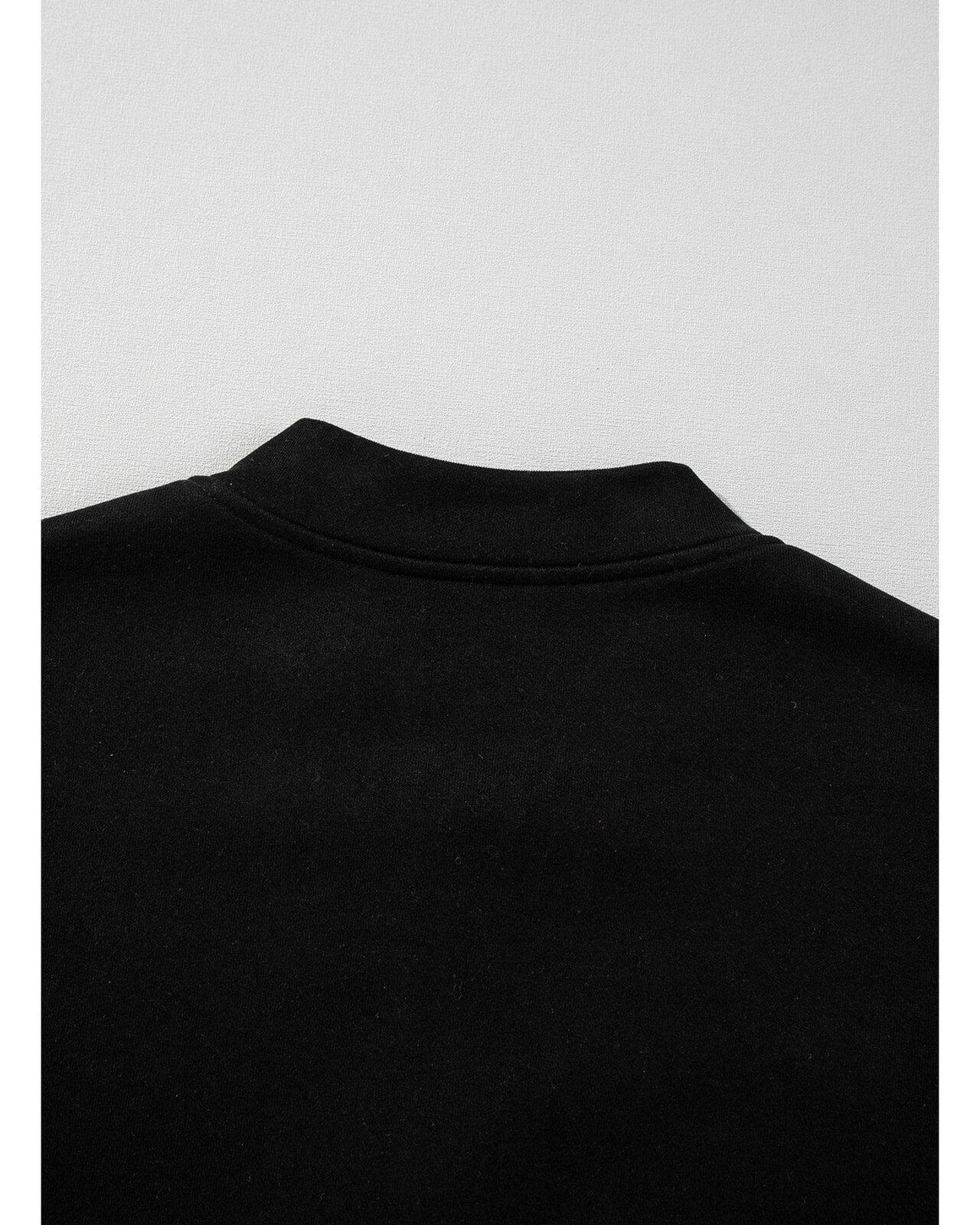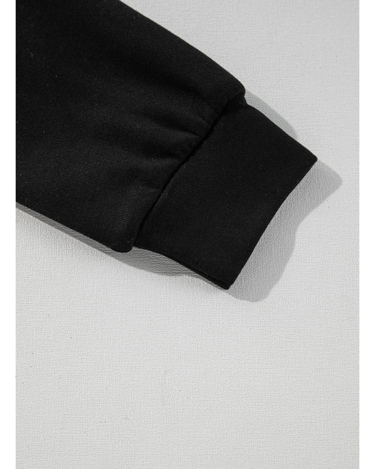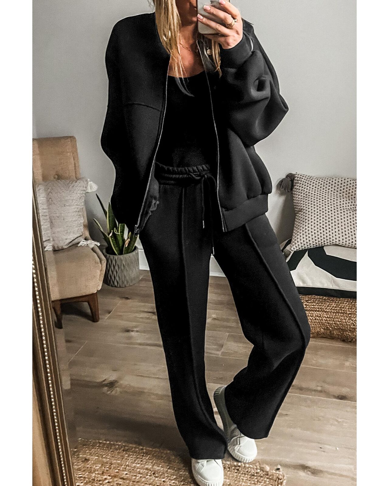 • Black solid seamed zipper jacket and drawstring waist pants set