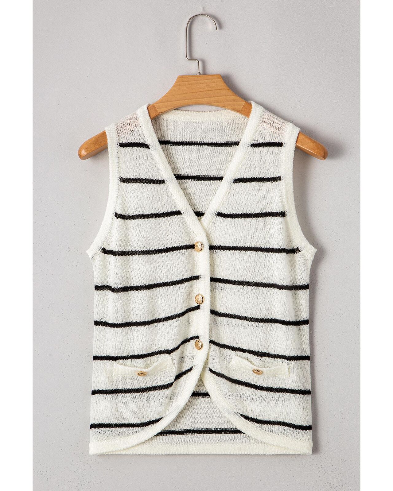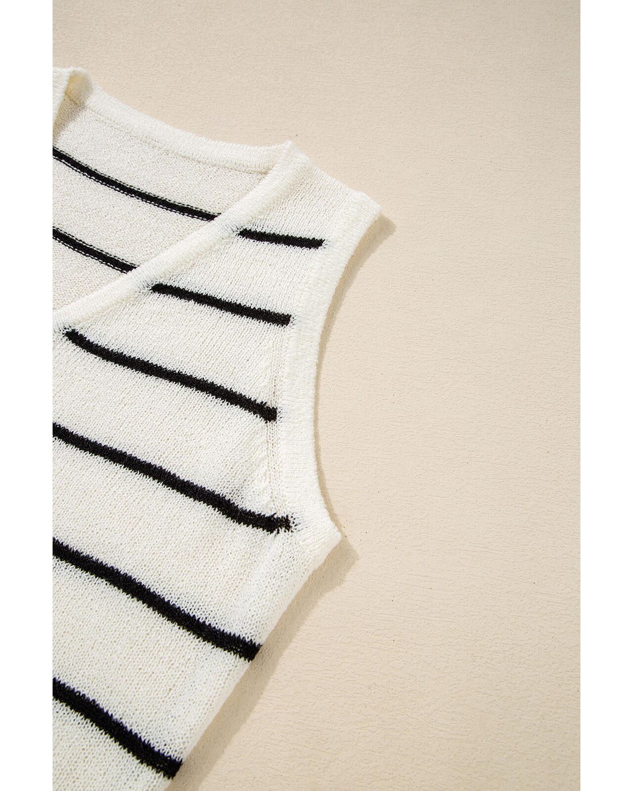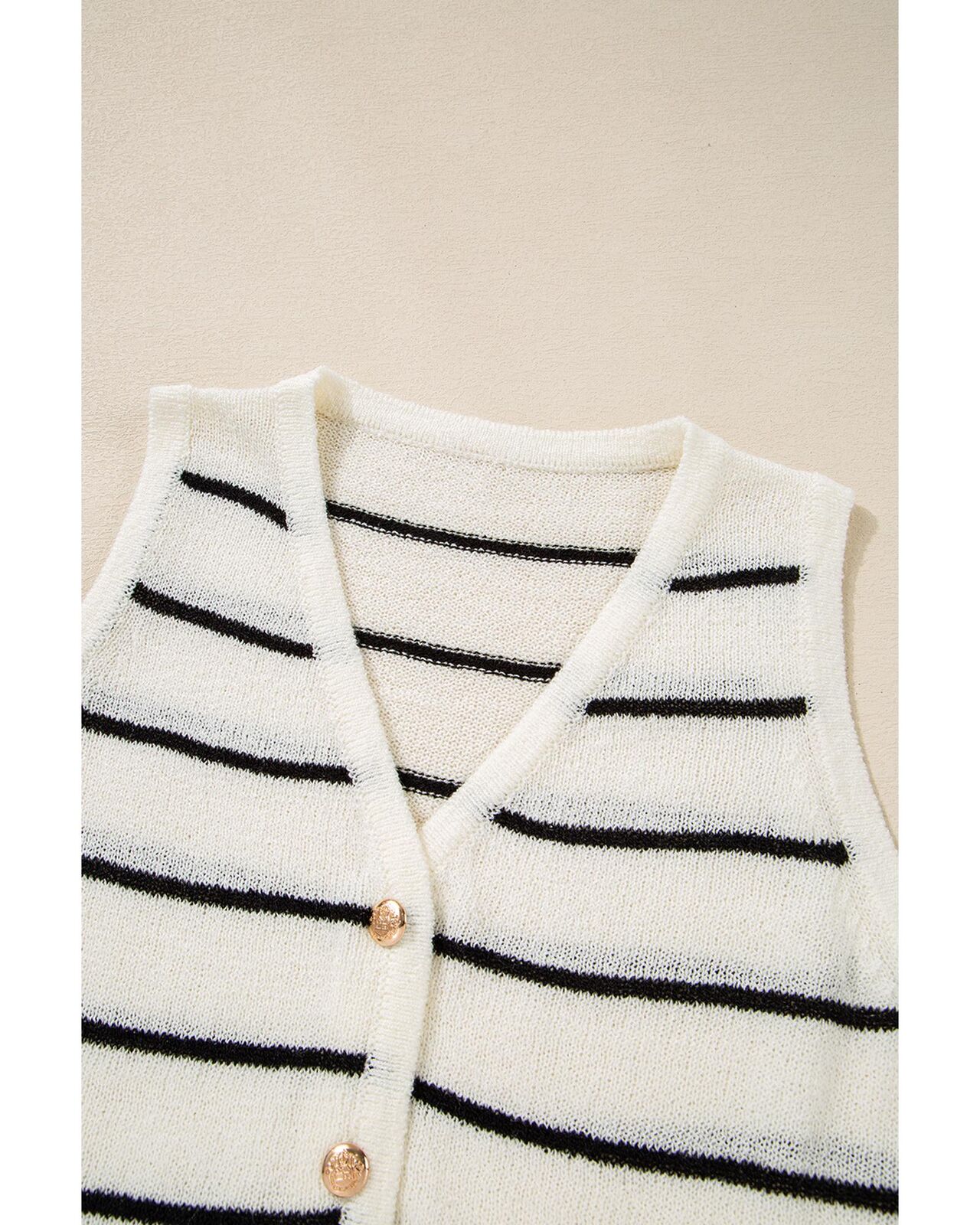 • Black Stripe Buttoned V Neck Slim Fit Sweater Vest