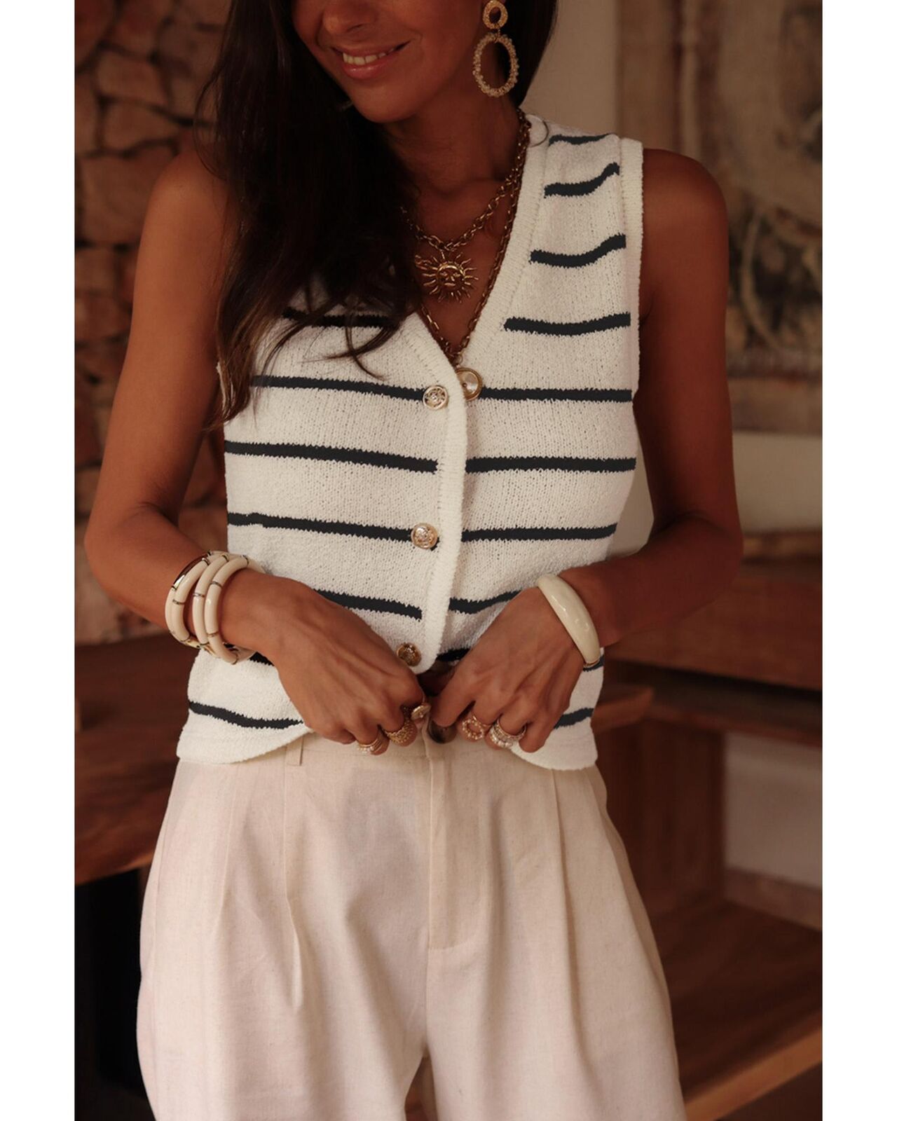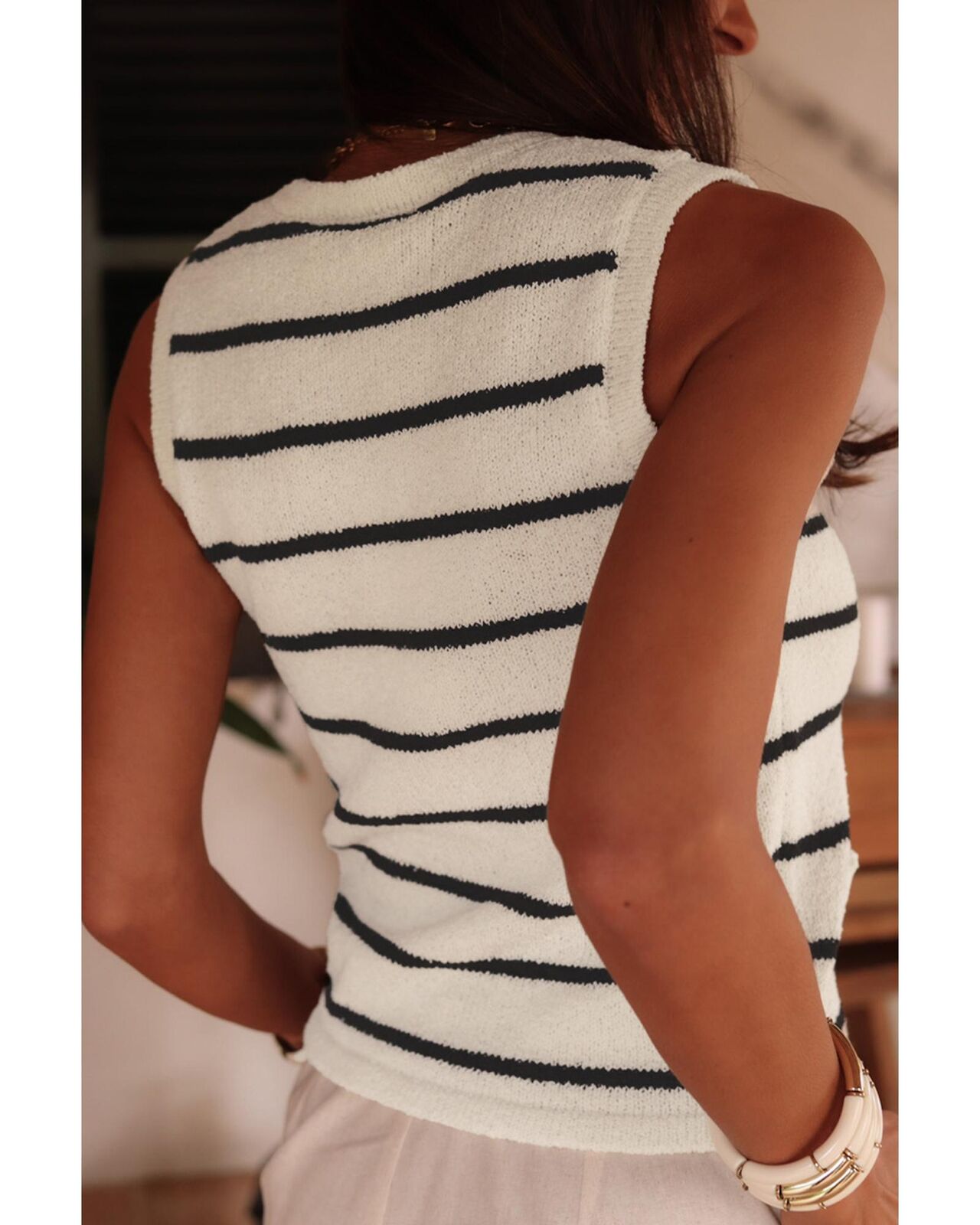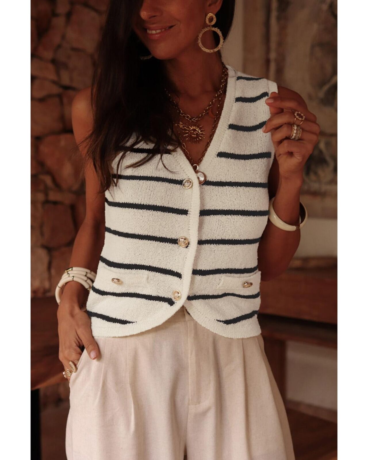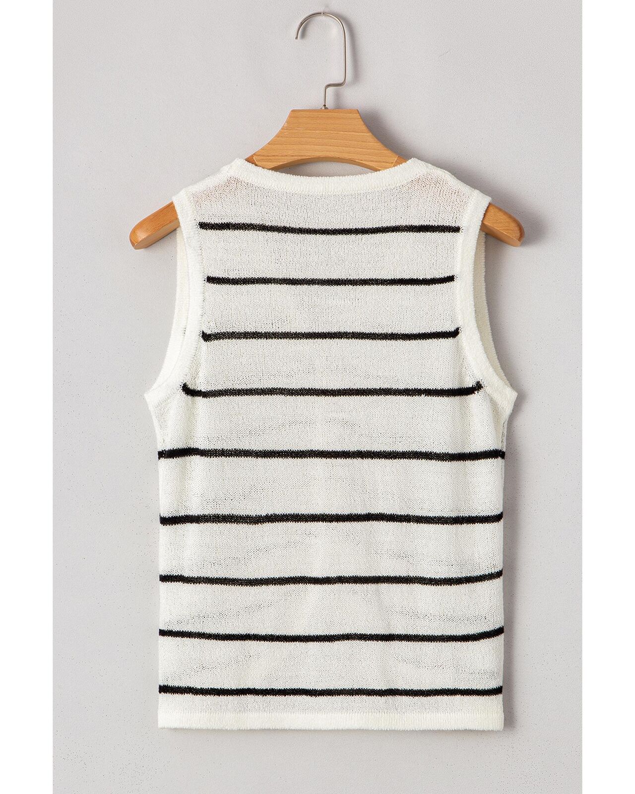 • Black Stripe Buttoned V Neck Slim Fit Sweater Vest