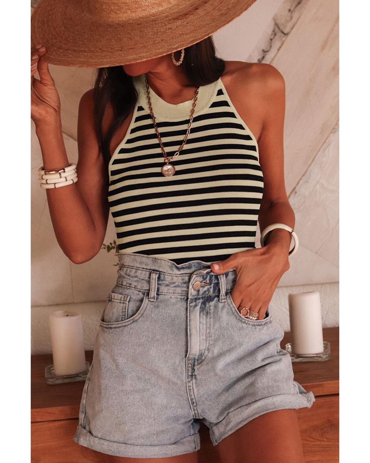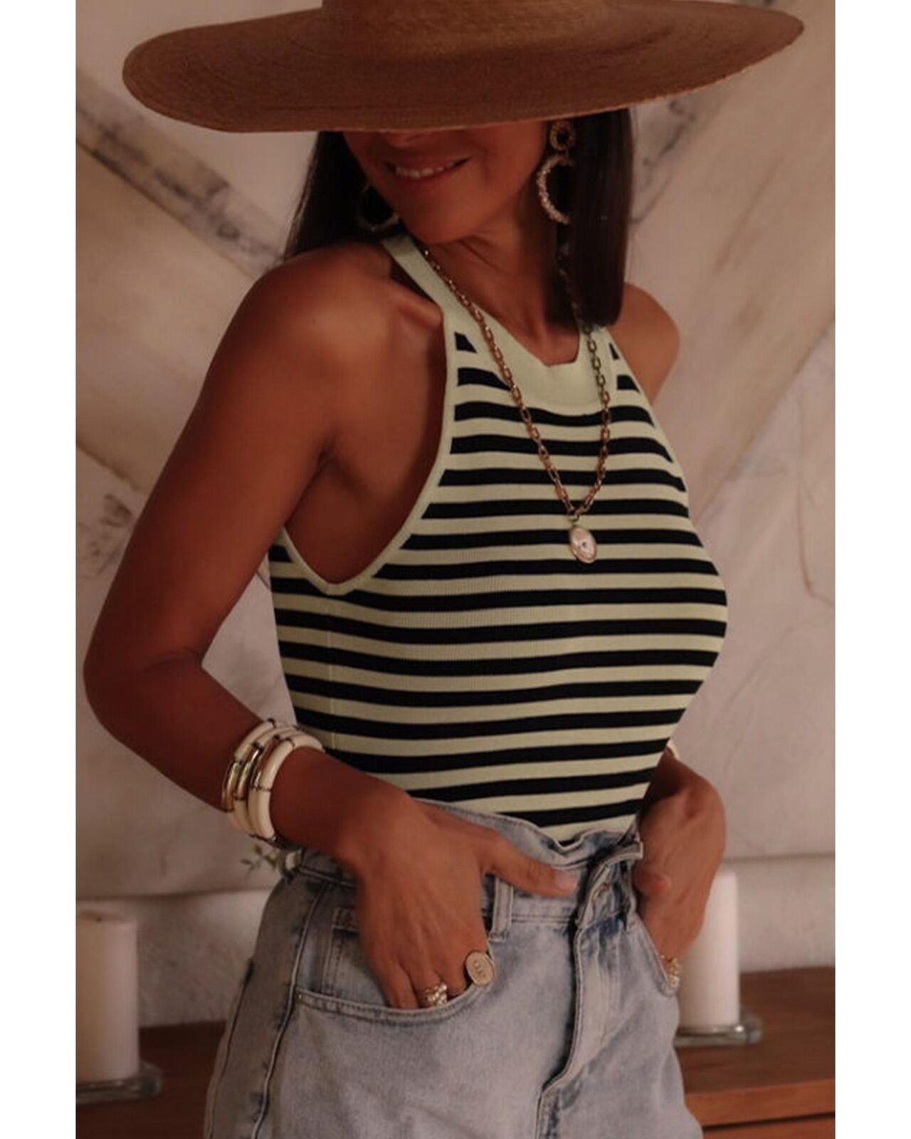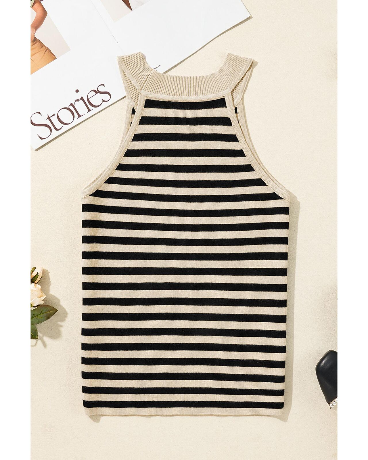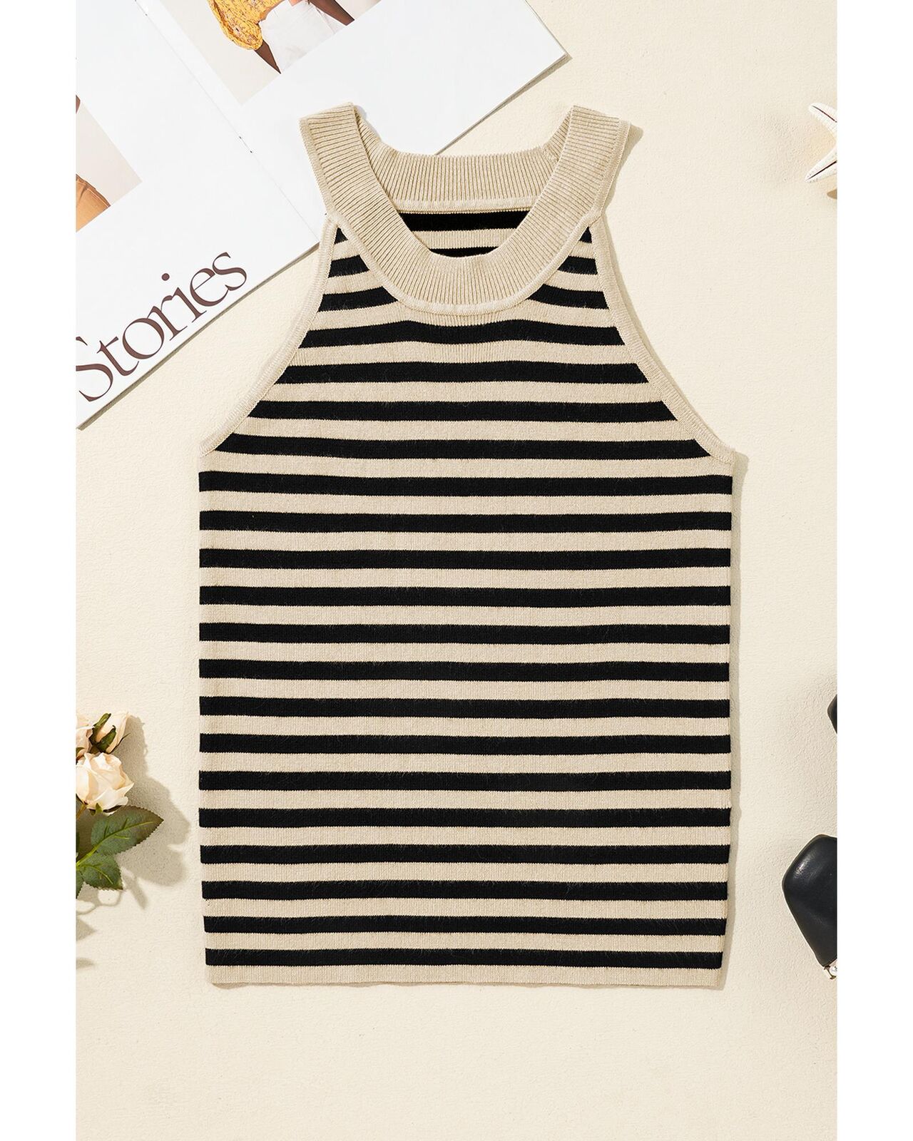 • Knitted vest with a timeless striped pattern