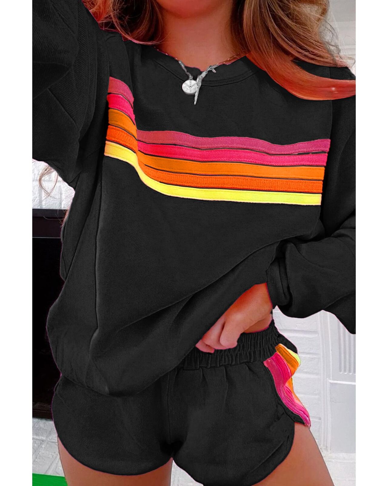 • Stylish striped accent on pullover and shorts