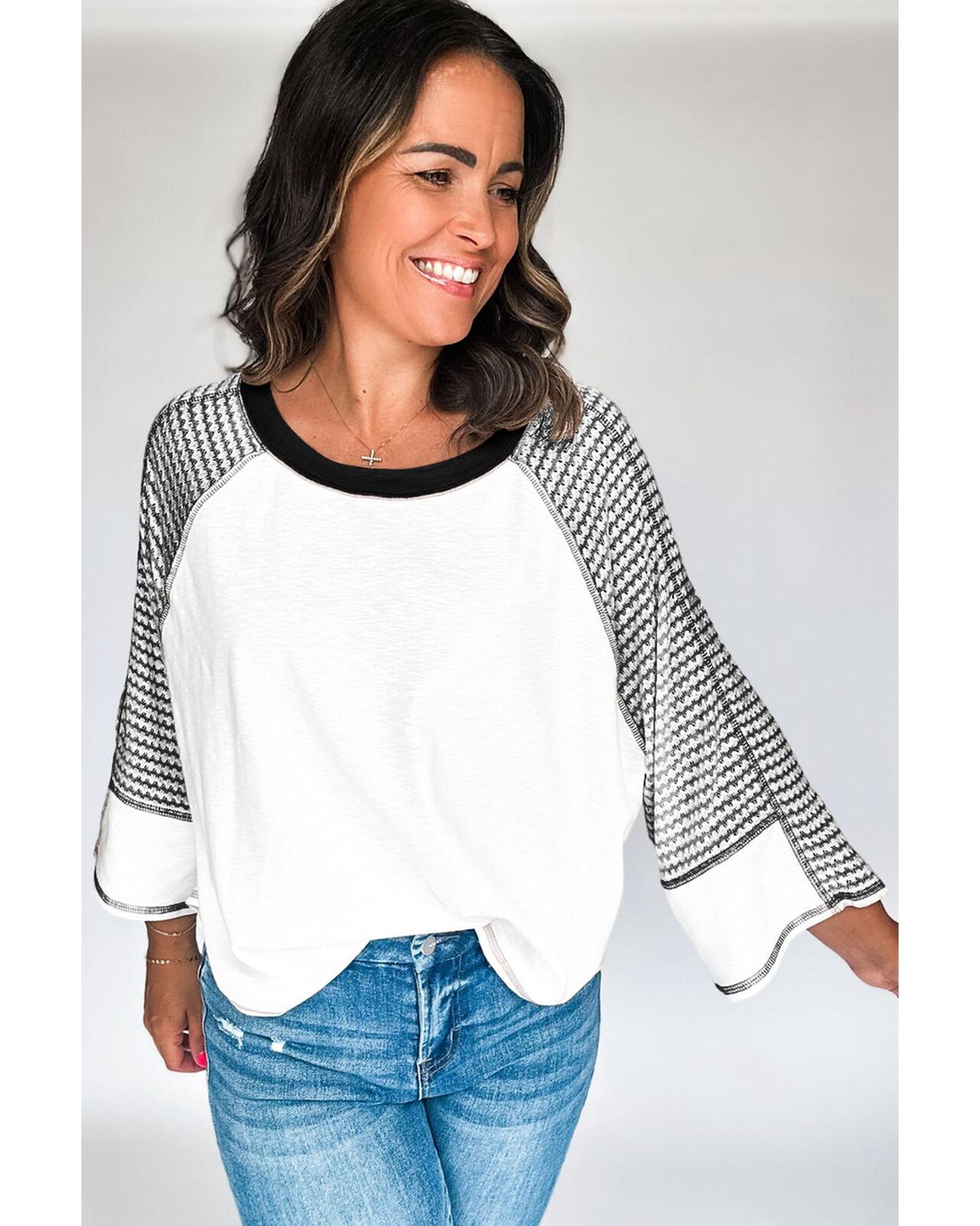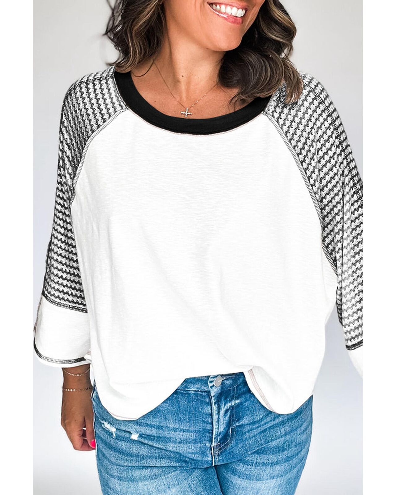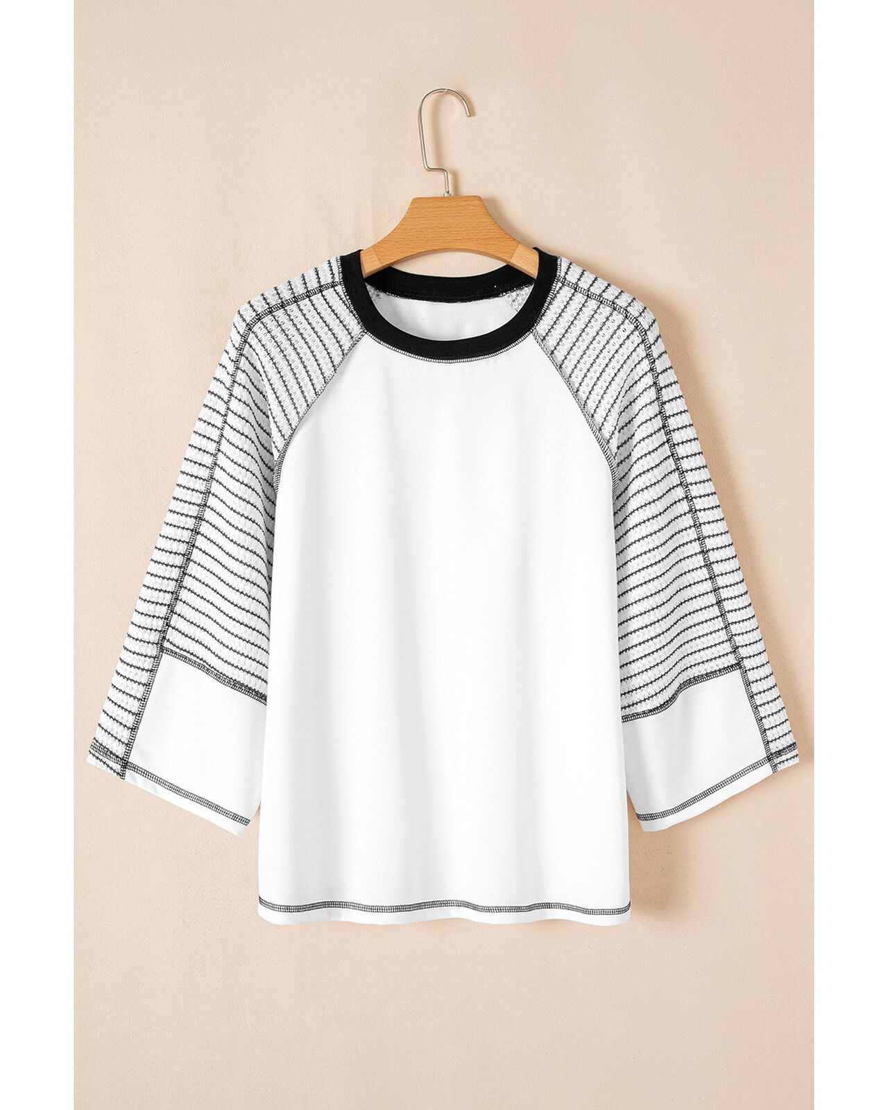 • Chic patchwork top with striped raglan sleeves