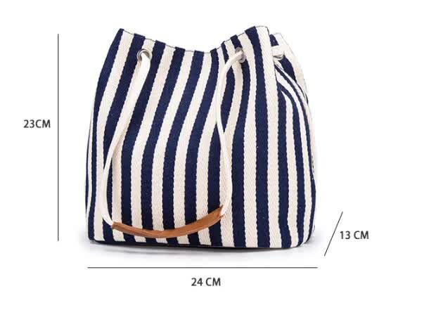 Black Stripes Canvas Bucket Tote Bag with Leather Handle