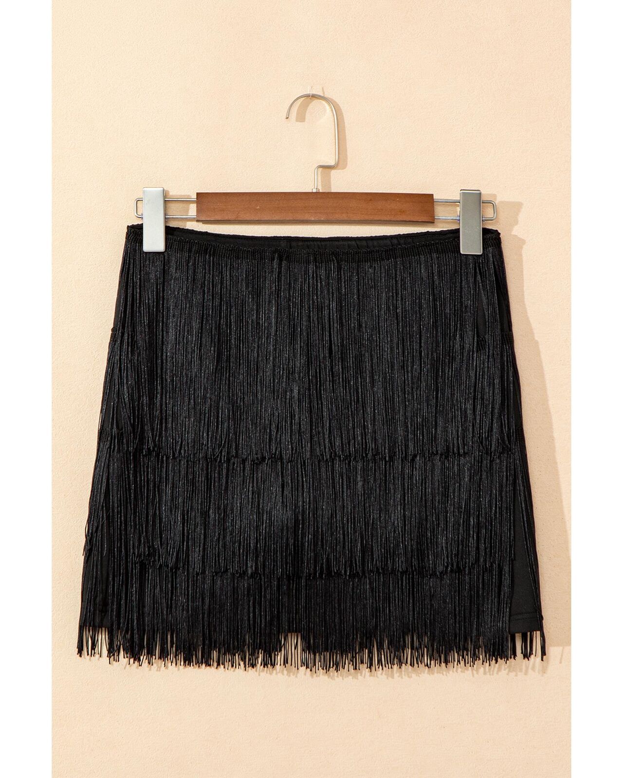 • Effortlessly chic mini skirt with a tiered fringe silhouette