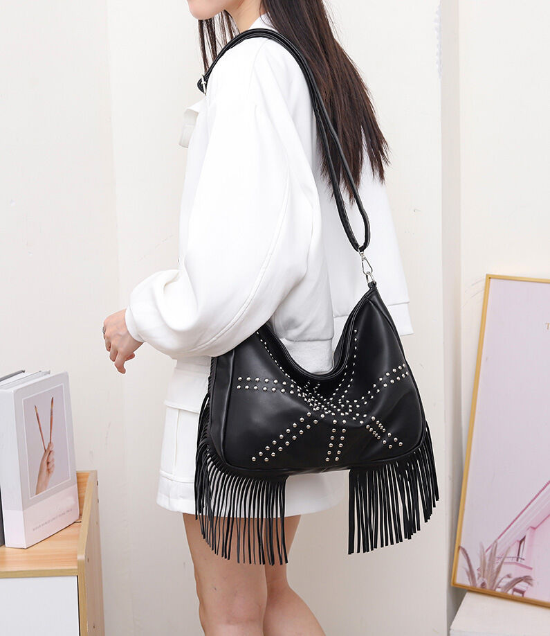 - Stylish Design: Featuring rivet embellishments and trendy fringes, this bag adds a unique touch to your outfit.