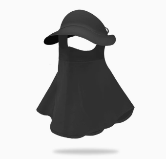 Black Women's UV Protection Sun Hat with Detachable Neck Flap and Wide Brim