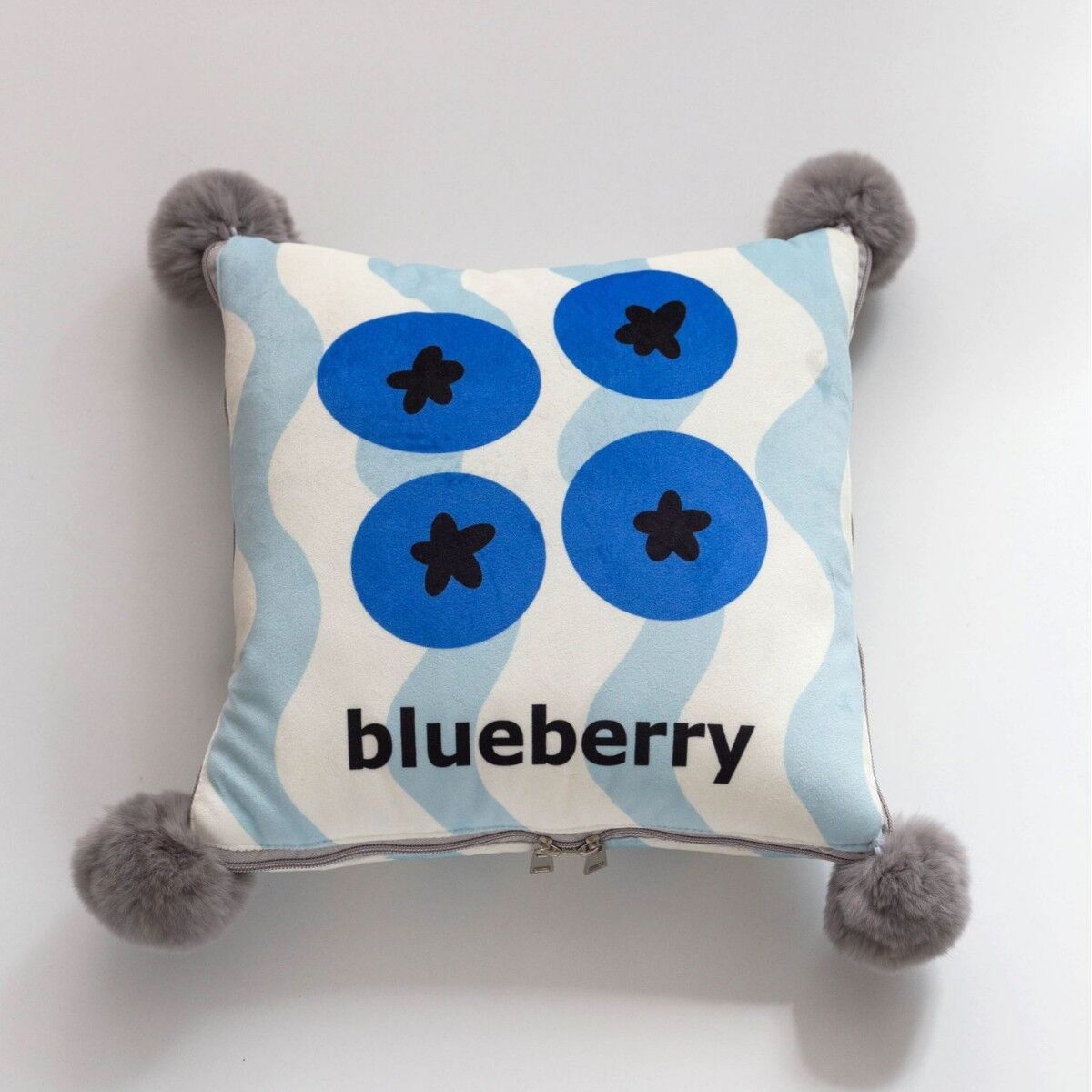 Blue Blueberry Pattern Premium Plush Throw Pillow Blanket Combo - Versatile Sofa Cushion for Home and Car Use, Ideal for Naps and Lounging