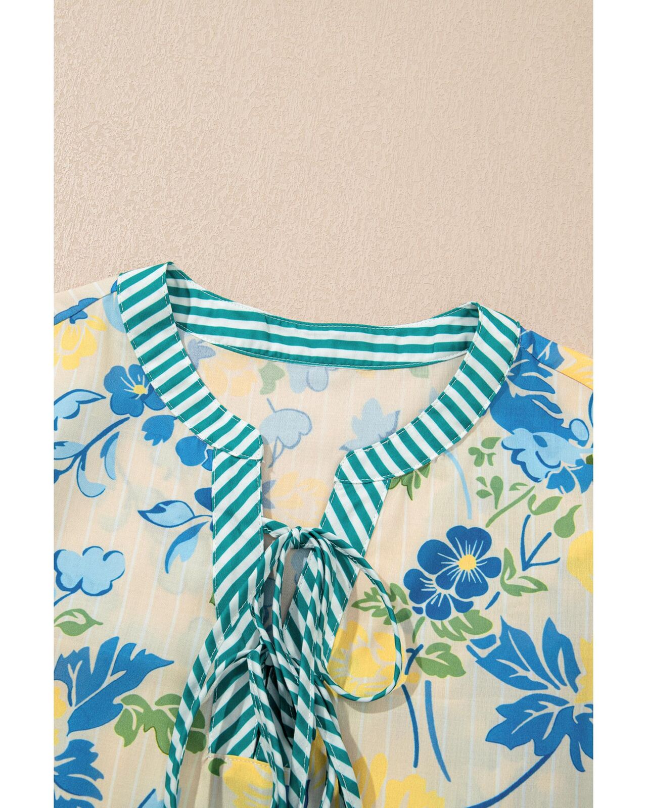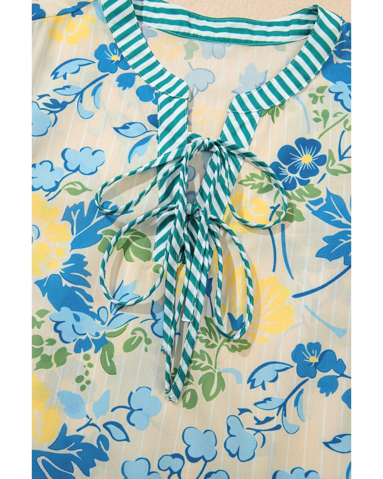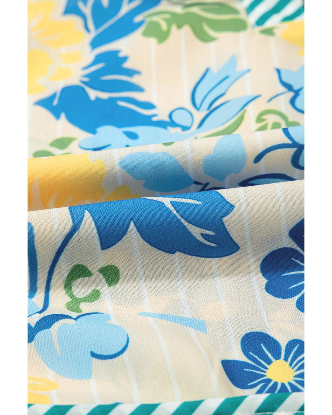 • Floral print with fuzzy stripes