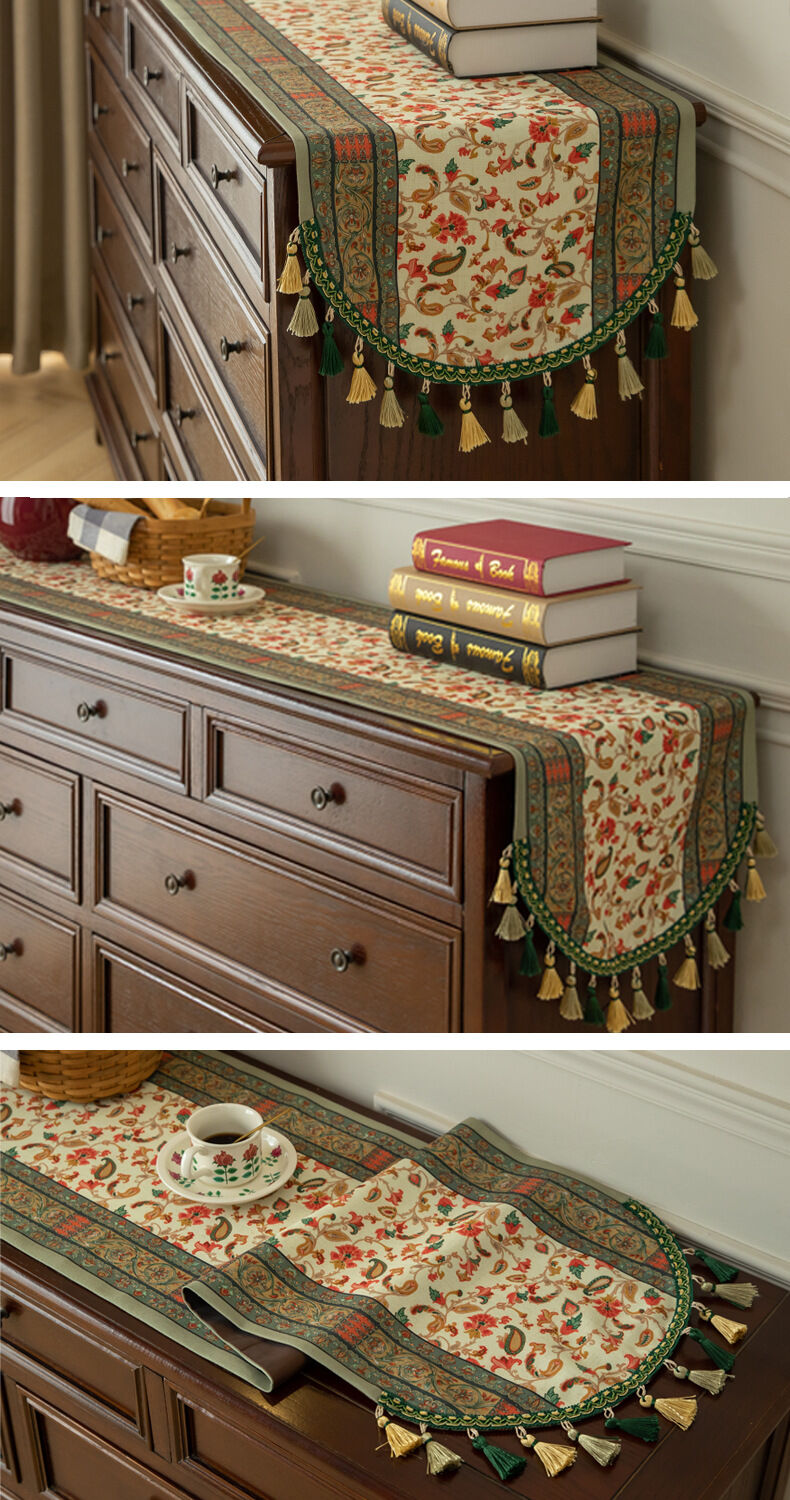 Elevate your home decor with this elegant vintage-style table runner. Perfect for adding a touch of charm to your dining or living space, it features: