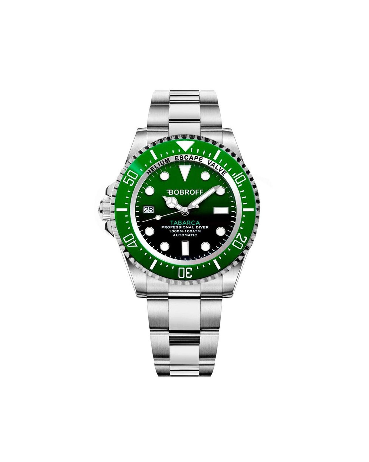 - quality stainless steel this watch features a striking green dial protected by a durable sapphire crystal. The 44mm case and bracelet are both silver