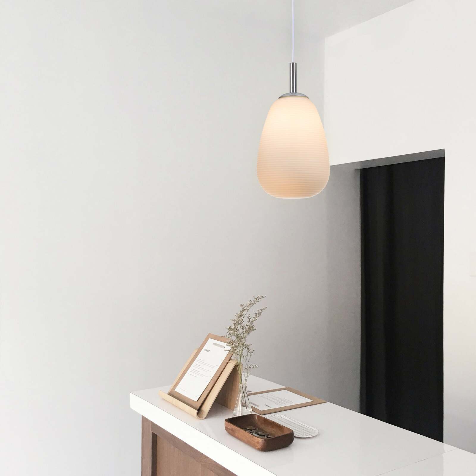 The Briella Glass Pendant Light is a refined lighting piece that looks great when used individually, paired or grouped. The shiny chrome ceiling mount and pendant holder are matched with an elegant white glass shade which works well with different interior decors, allowing it to be used in rooms with both neutral and bold colours.