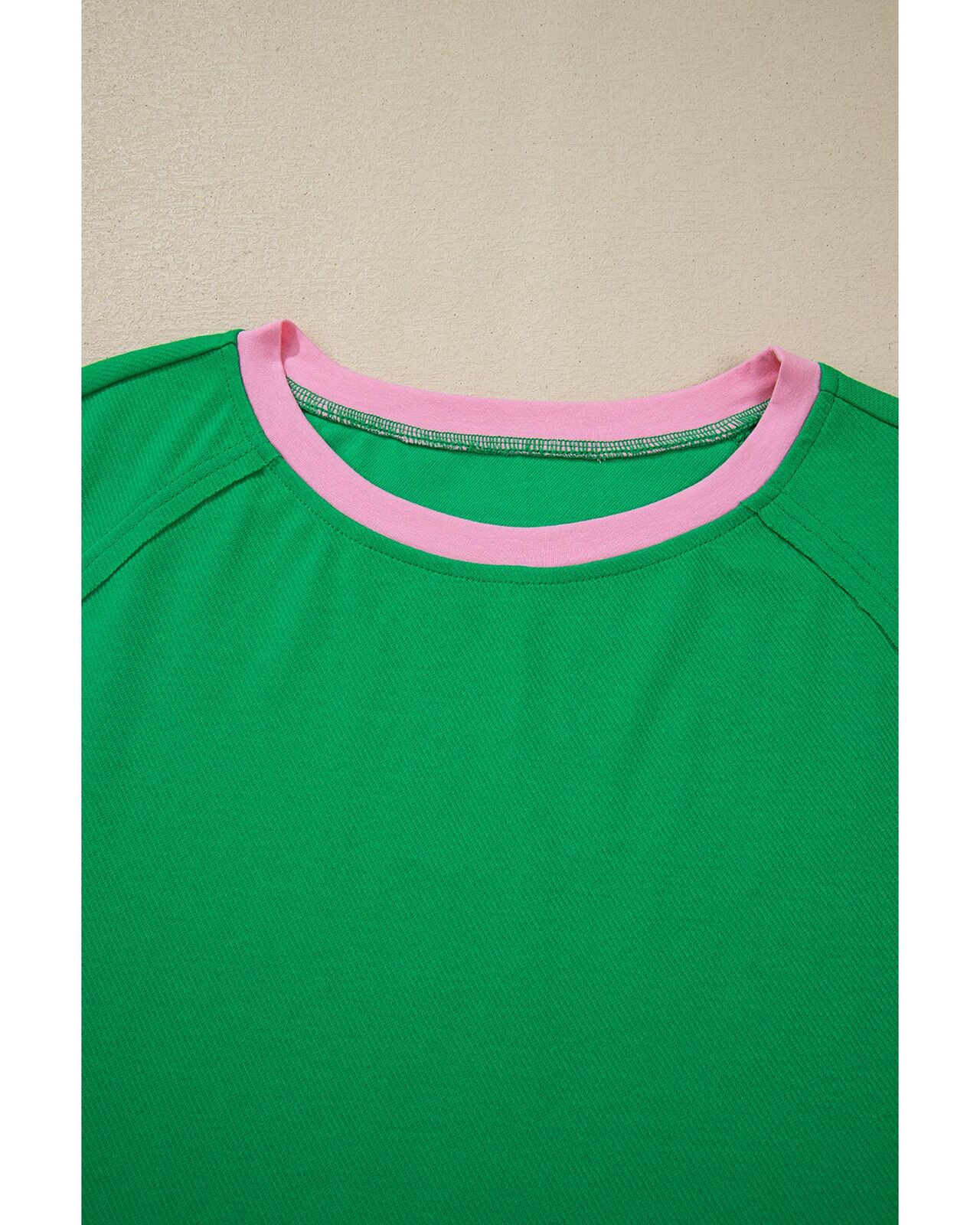 • Bright Green Two Tone Contrast Textured Crewneck Tee and Shorts Set