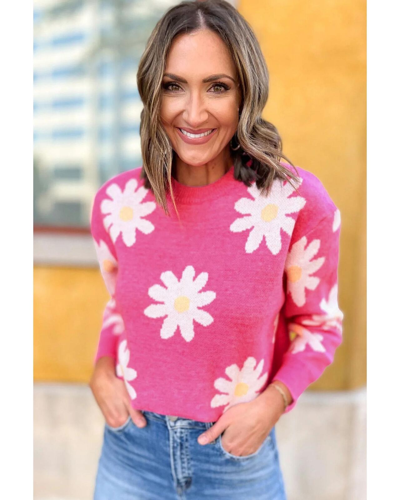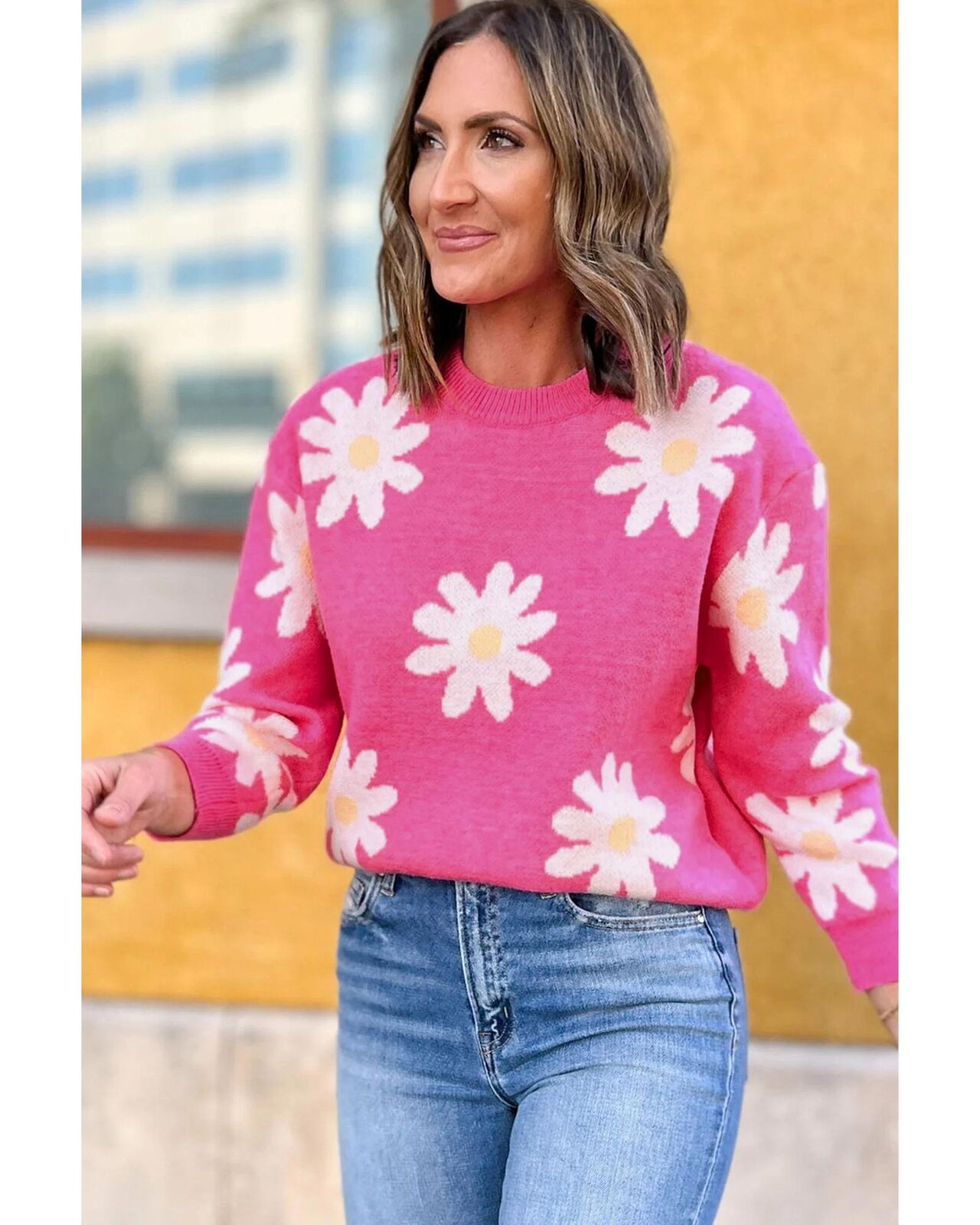 • Bright pink daisy flower print