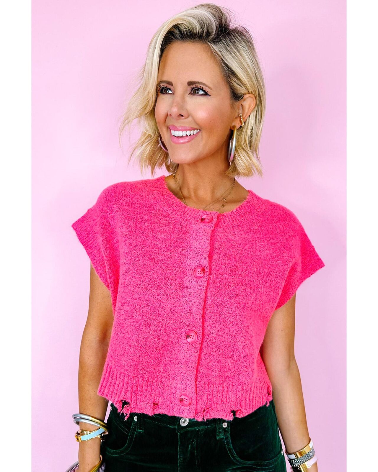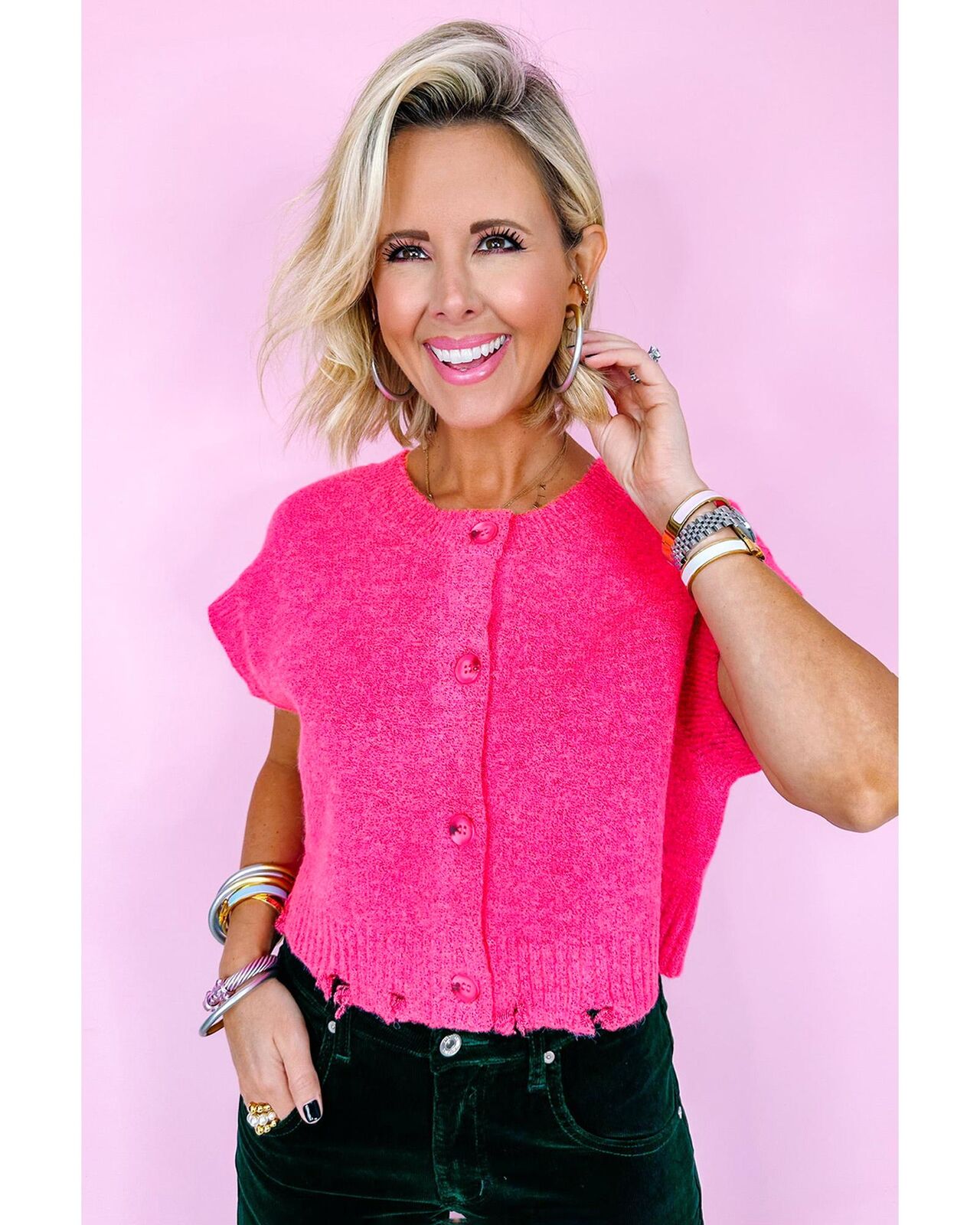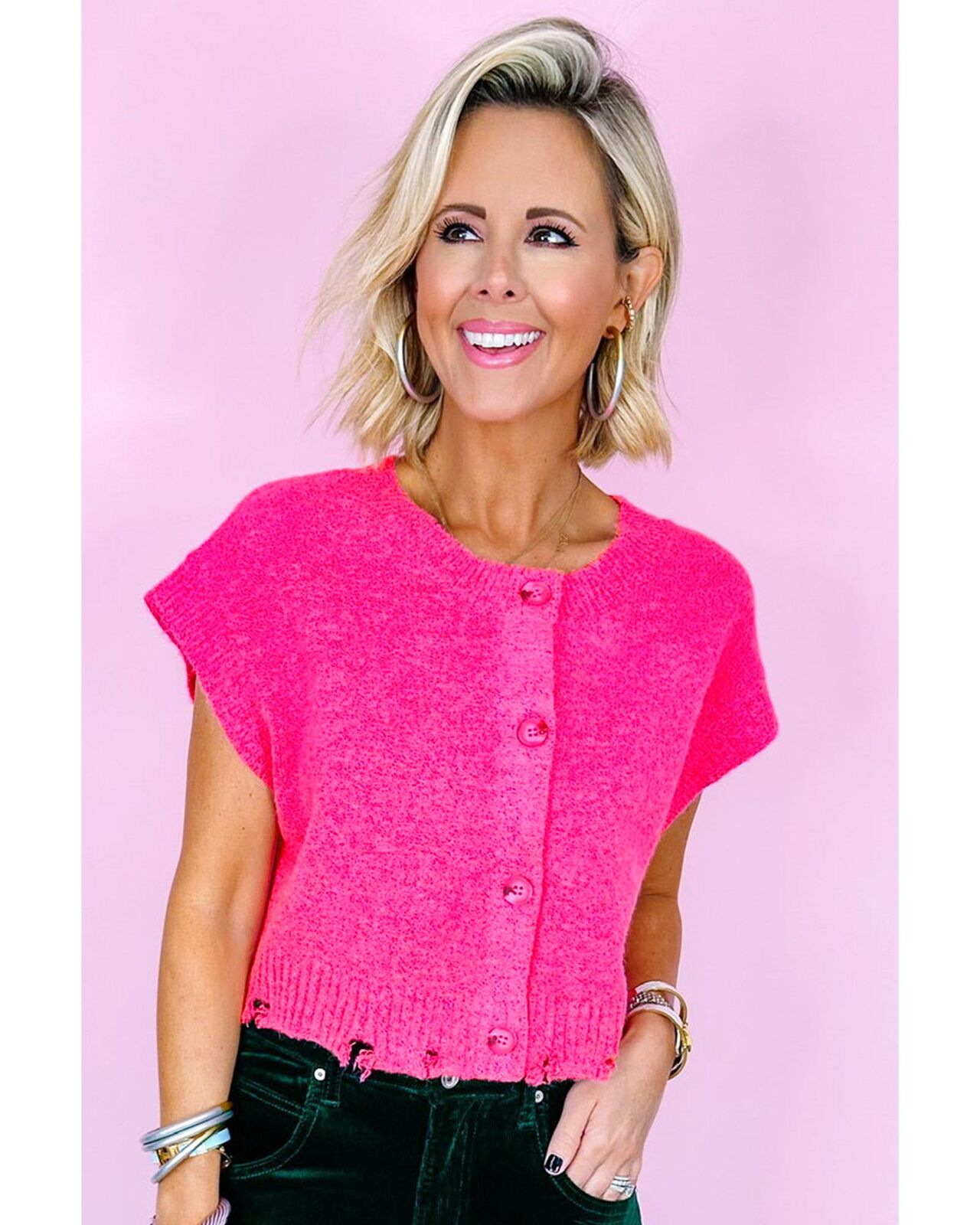 • Distressed hem for a trendy and edgy look