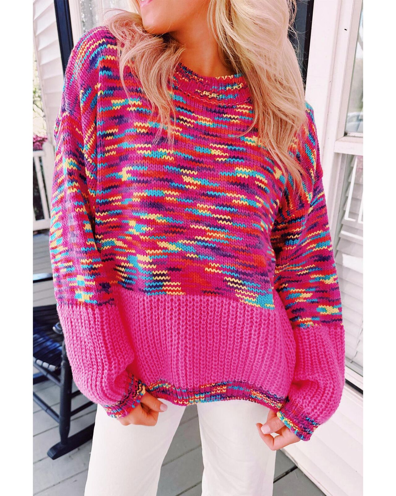 • Bright Pink Rainbow Confetti Drop Shoulder Sweater