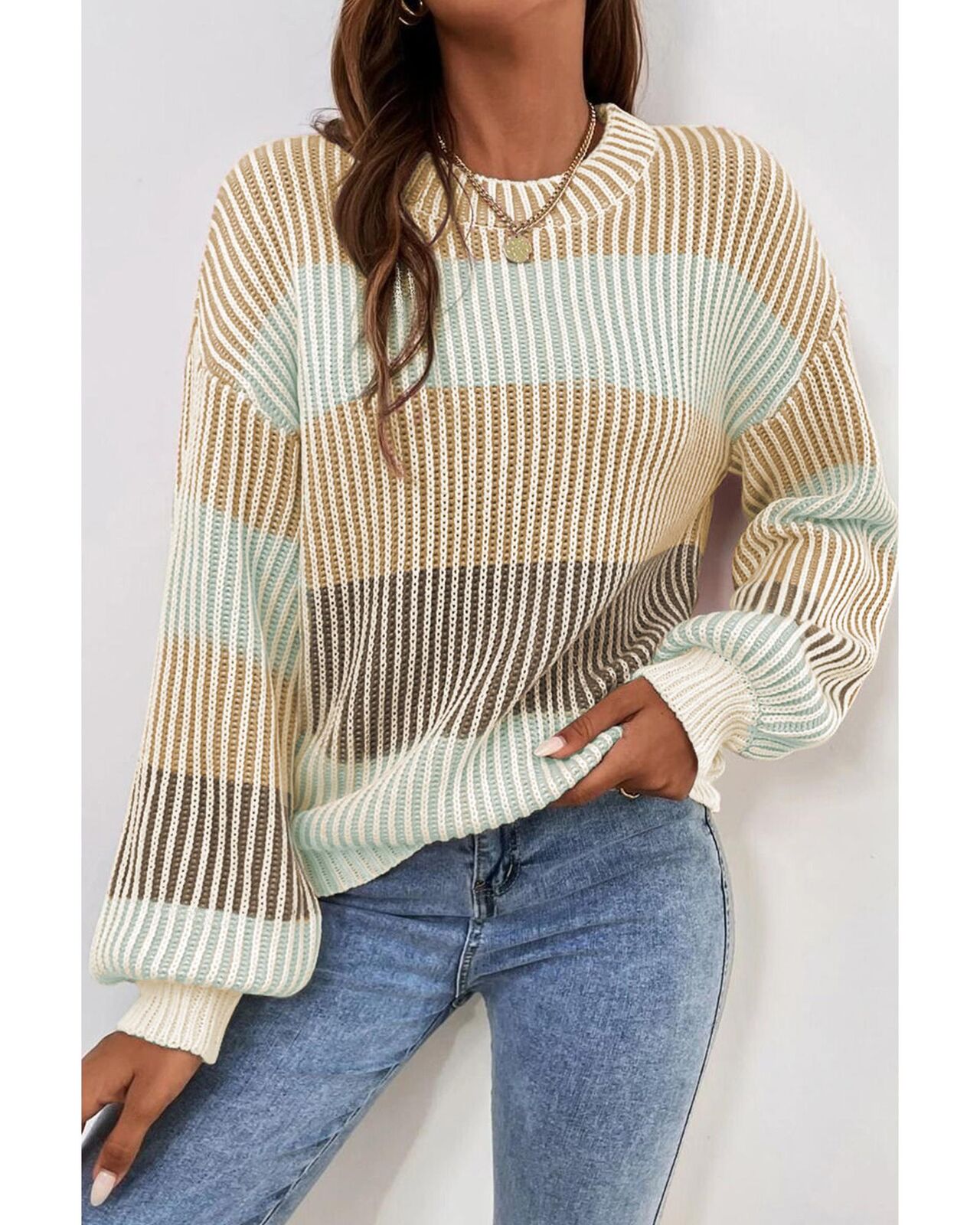 • Textured knit sweater for a cozy feel