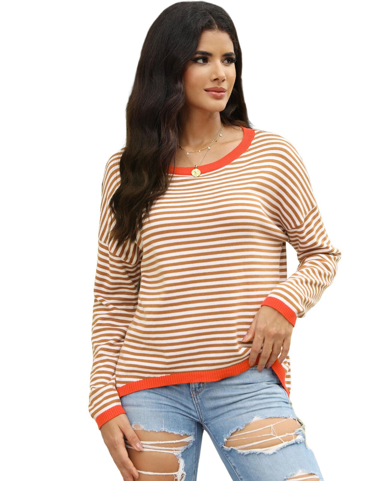 • Our styles are designed with a trendy fitted look in mind following an international size standard. For the best fit we suggest choosing one size up from your usual. Be sure to check our sizing chart to find your perfect match! Classic striped sweater with contrast trimmed detailing Chic and comfortable drop shoulder design Regular fit style suitable for most body shapes Versatile piece that pairs well with jeans joggers or skirts Available in various sizes