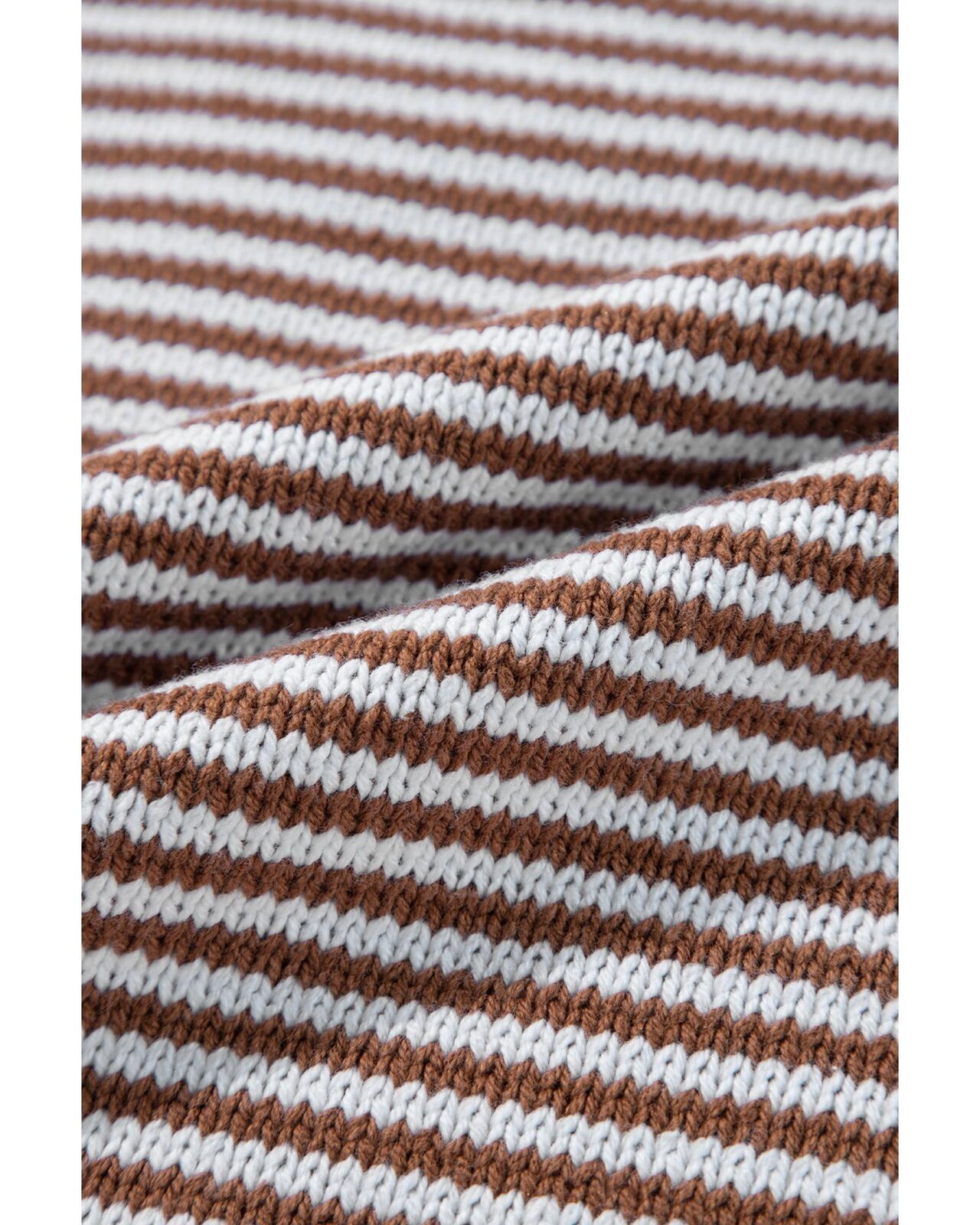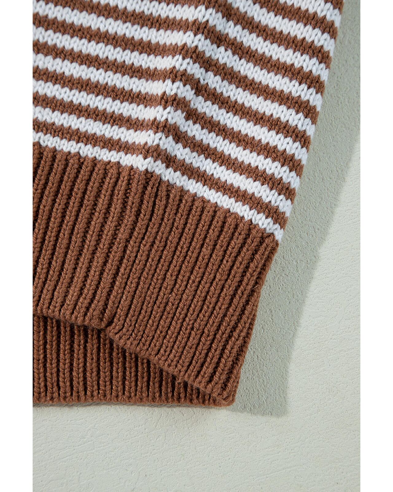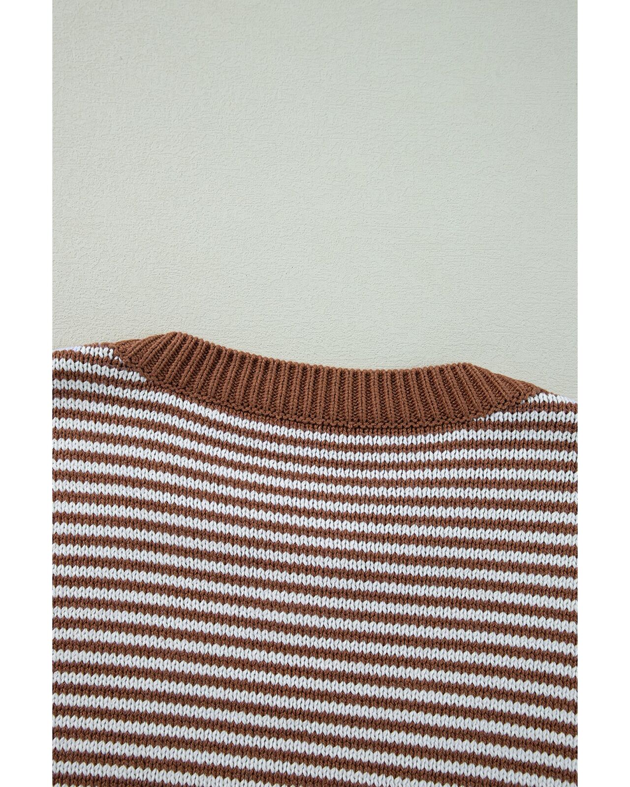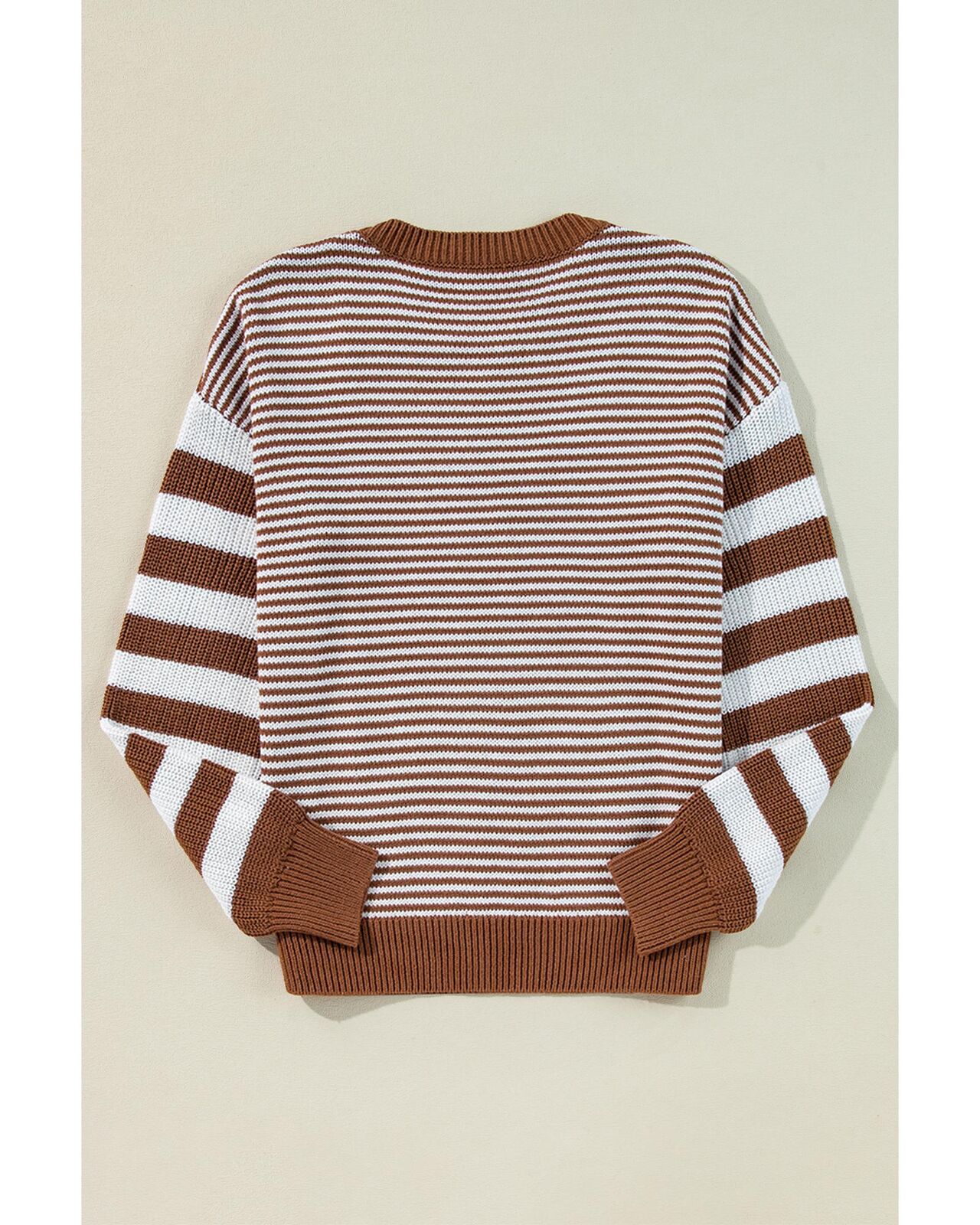 • Brown Stripe Geometric Textured Drop Shoulder Sweater