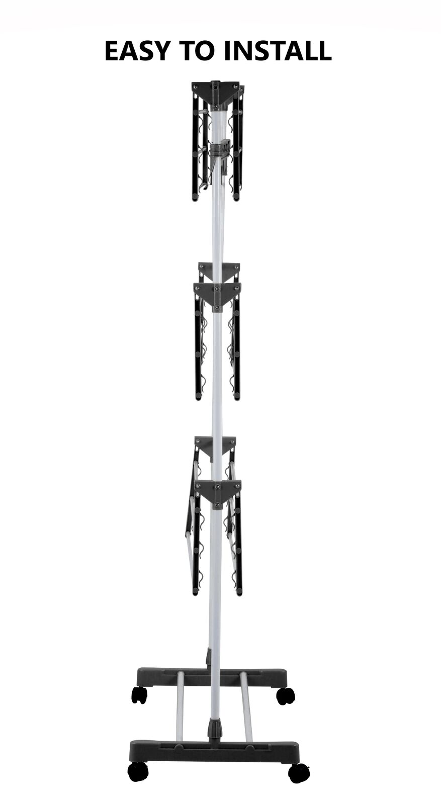 - LARGE CAPACITY: This 3-Tier Folding Clothes Drying Rack features an overall dimension of 165 x 140 x 57 cm and a 3-tier construction with 6 foldable shelves, 2 side wings with 7 holes for hanging and drying different clothes easily and conveniently.