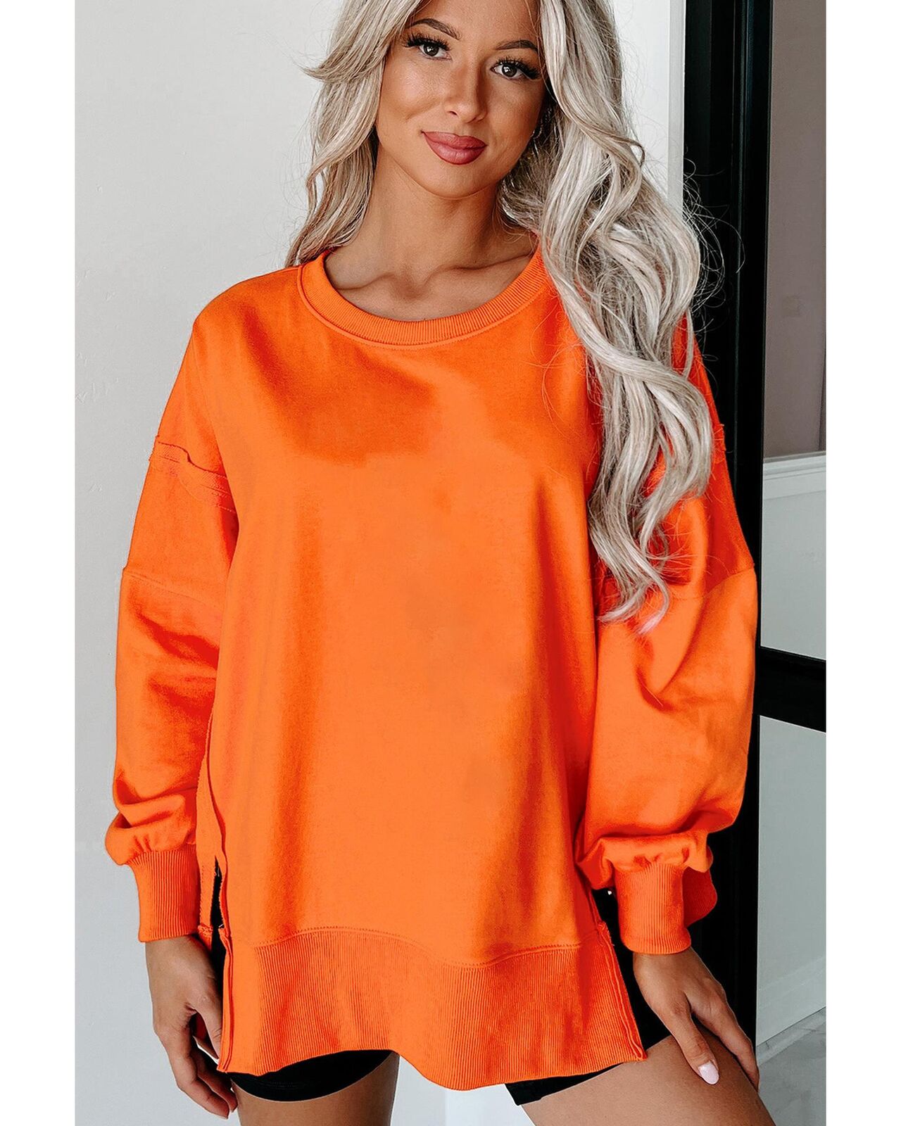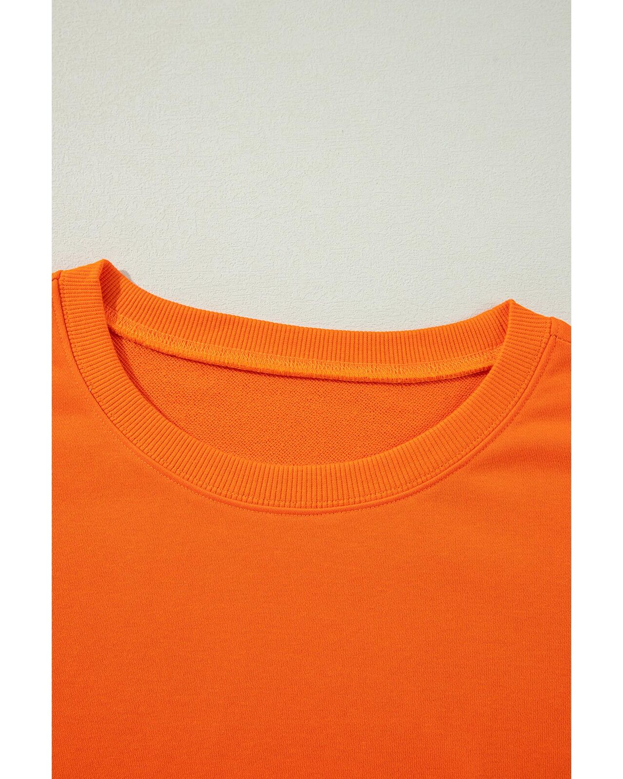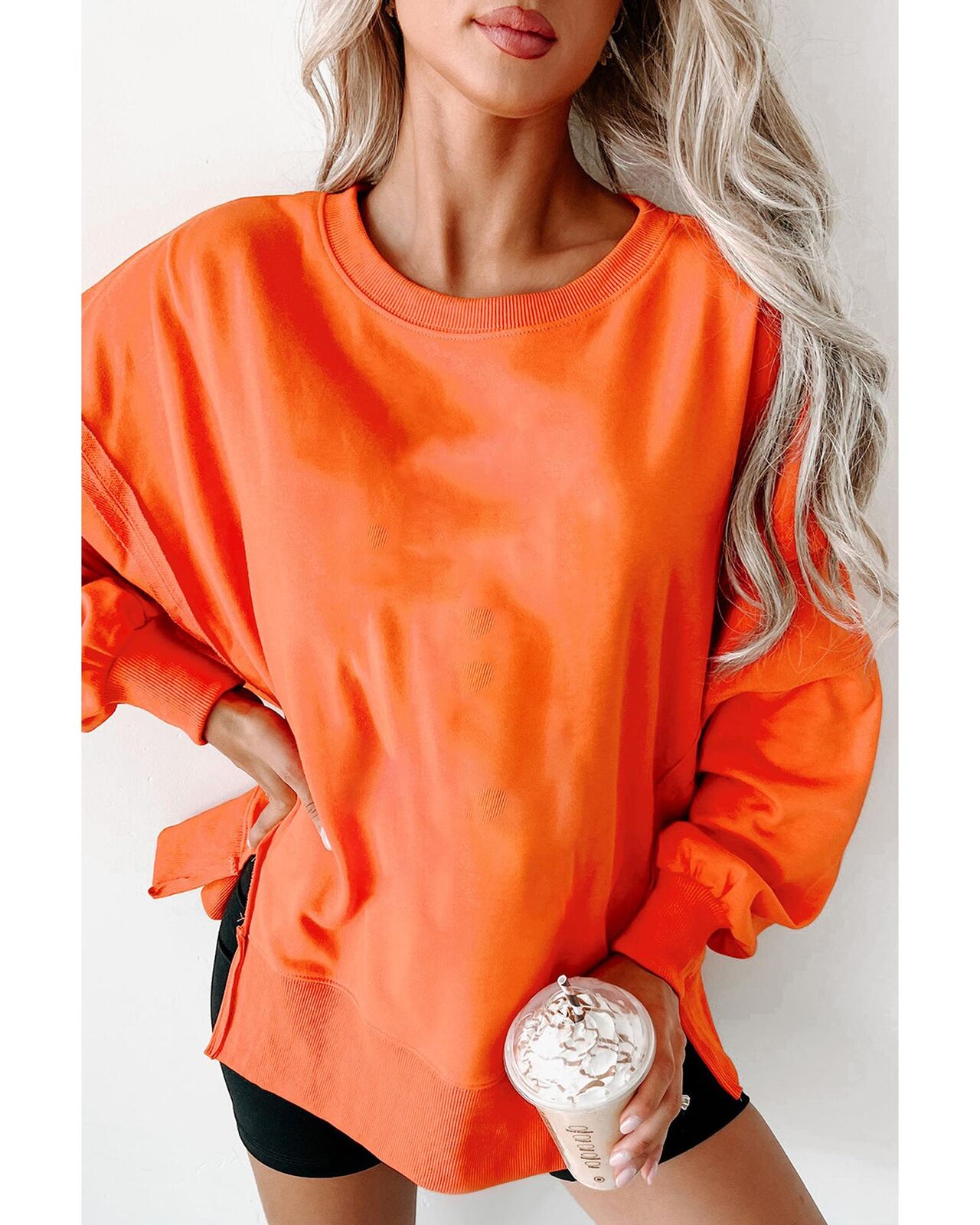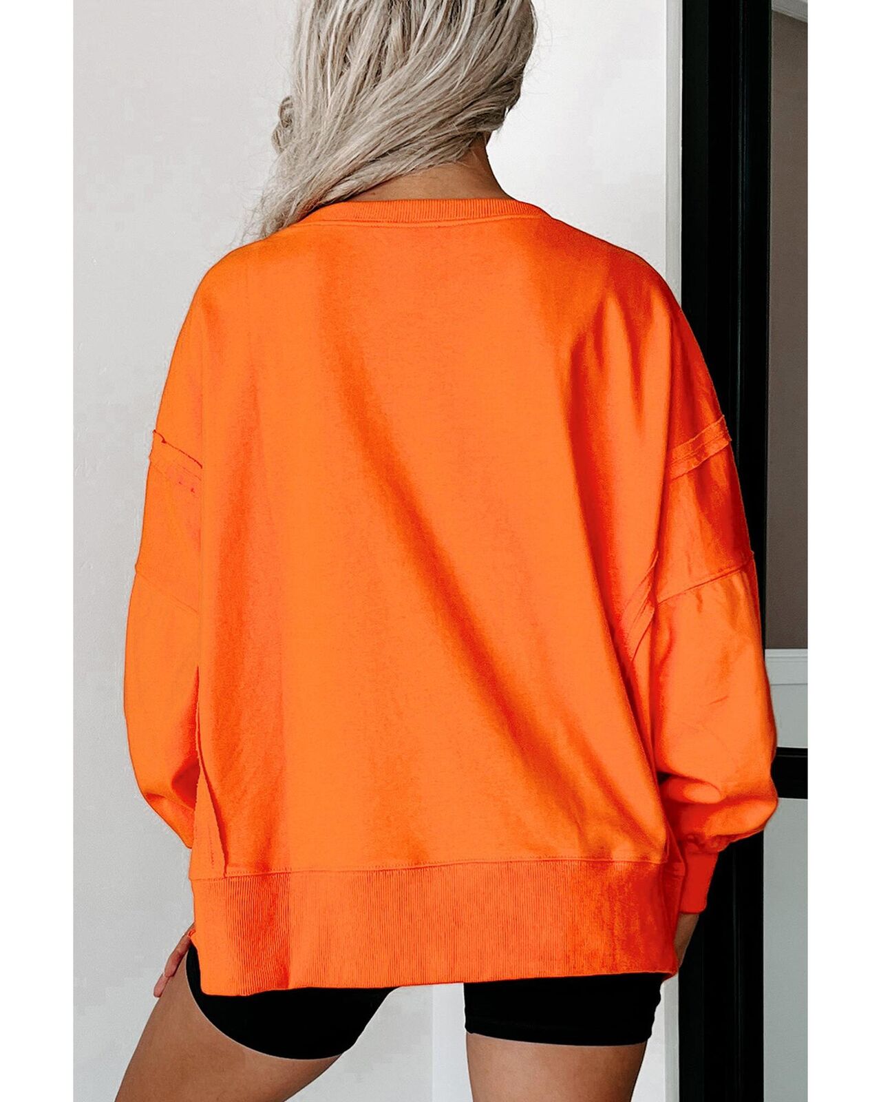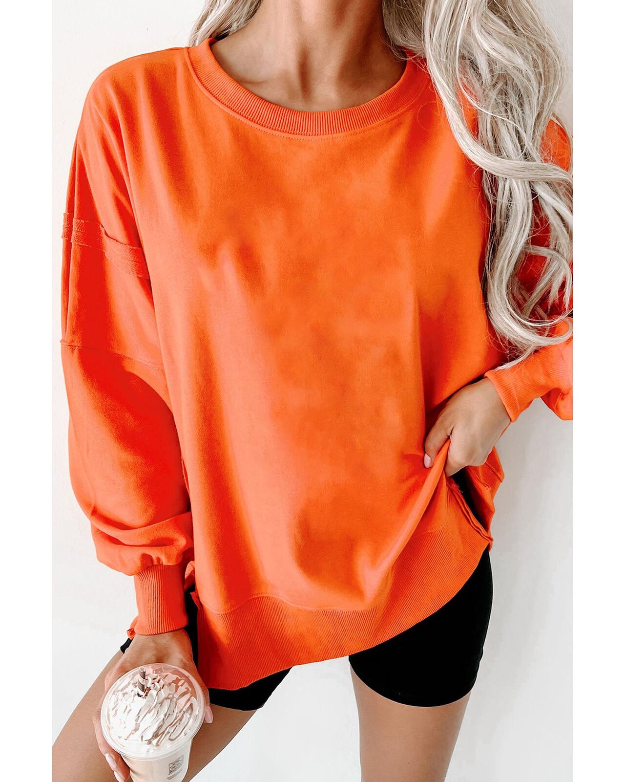 • Carrot Exposed Seam Drop Shoulder Round Neck Sweatshirt with Slits
