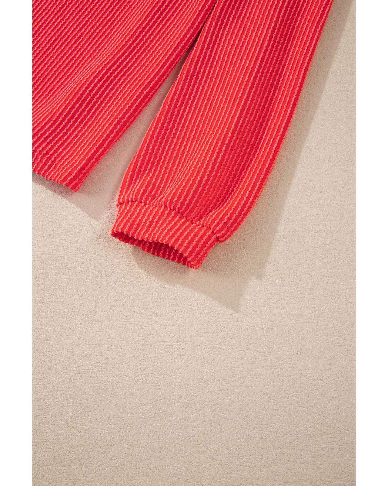 • Casual Corded Knit Long Sleeve Top and High Waist Shorts Set