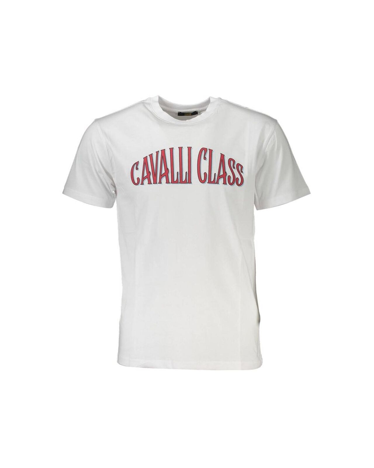 • Pristine white t-shirt from Cavalli Class with a sleek print and iconic logo