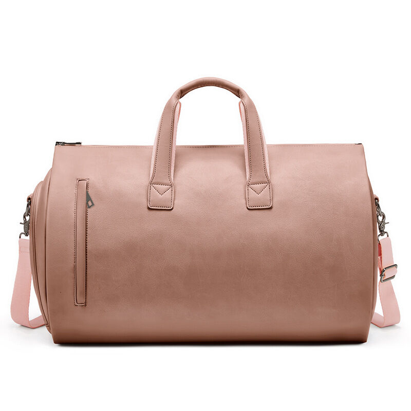 Champagne PU Leather Travel Duffel Bag - Large Capacity Waterproof Suit Bag with Shoe Compartment
