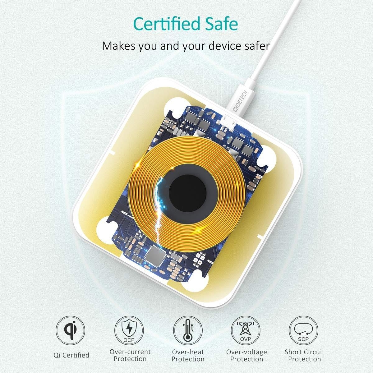 Integrated smart chip inside it that resists the wireless charging pad from overheating, overvoltage and short circuit. Qi-certified by the Wireless Power Consortium Ensures an ultimate safety charging environment, never overcharges your battery or wastes energy. (It is normal that charging paused caused by various factors)
