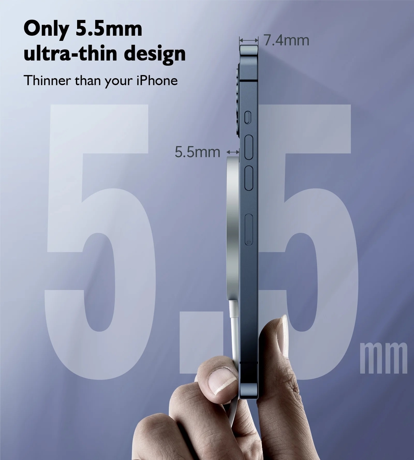 The circle design keeps your device neatly in place while it powers up, the MagSafe Wireless Charger magnetically attaches to your phone to ensure safe charging and no signal interference while you're scrolling through your feed or gaming.