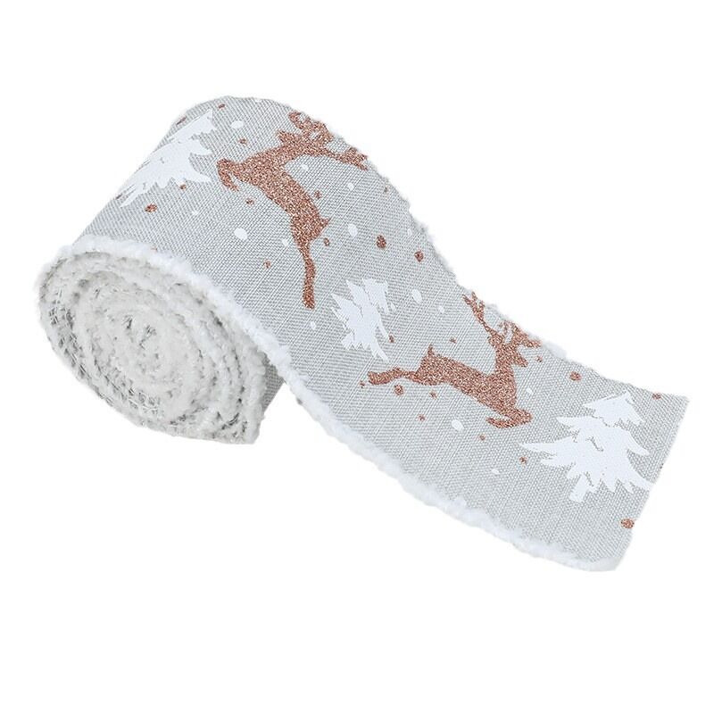 Christmas-Themed Decorative Wired Ribbon Burlap– Reindeer and Tree Print Rolled Fabric Set ,Diameter 6.8 cm, length 2 cm (two set, 6 pieces in total)