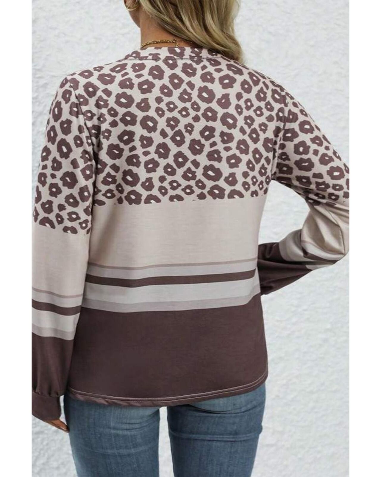 • Coffee Plus Size Leopard Striped Long Sleeve Crew Neck Top