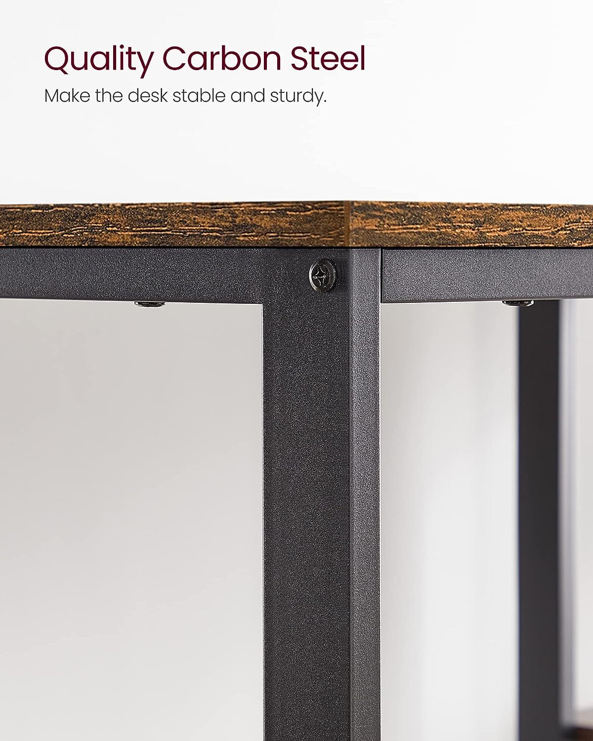 - This office desk is designed to last, with a sturdy steel frame and quality particleboard construction. You can confidently use it for all your work, study, or recreational needs - it can handle it all. Enjoy the peace of mind that comes with knowing your desk is durable and reliable.