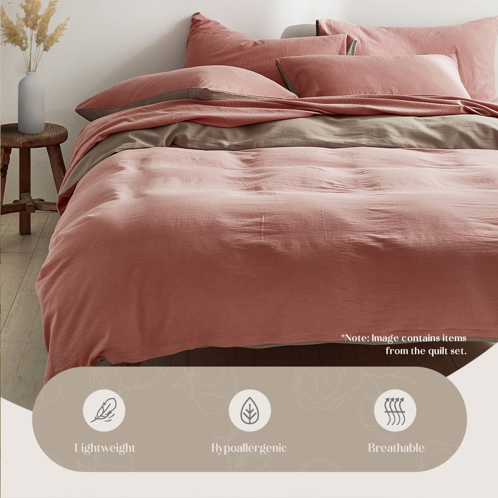 Want to wake up feeling warm and cosy? Count on Cosy Club's soft and plush quilt set. Crafted from 100% washed cotton, our quilt set feels exceptionally soft and comfortable. It is made from breathable fabric and is lightweight. It features an incredible textured feel and is available in a variety of beautiful colours. Now, achieve the kind of look you want for your bedroom. Additionally, our quilt set is easy to care and maintain. So no more extra efforts are needed to keep your quilt set in good shape. Not least, this quilt set is a perfect choice for those suffering from allergies as it is made from excellent quality hypoallergenic fabric. You can sleep in peace without worrying about developing any allergies. Get cosy and stay comfortable with our soft and beautiful quilt set. Ultimate comfort and cosy night's sleep guaranteed!
