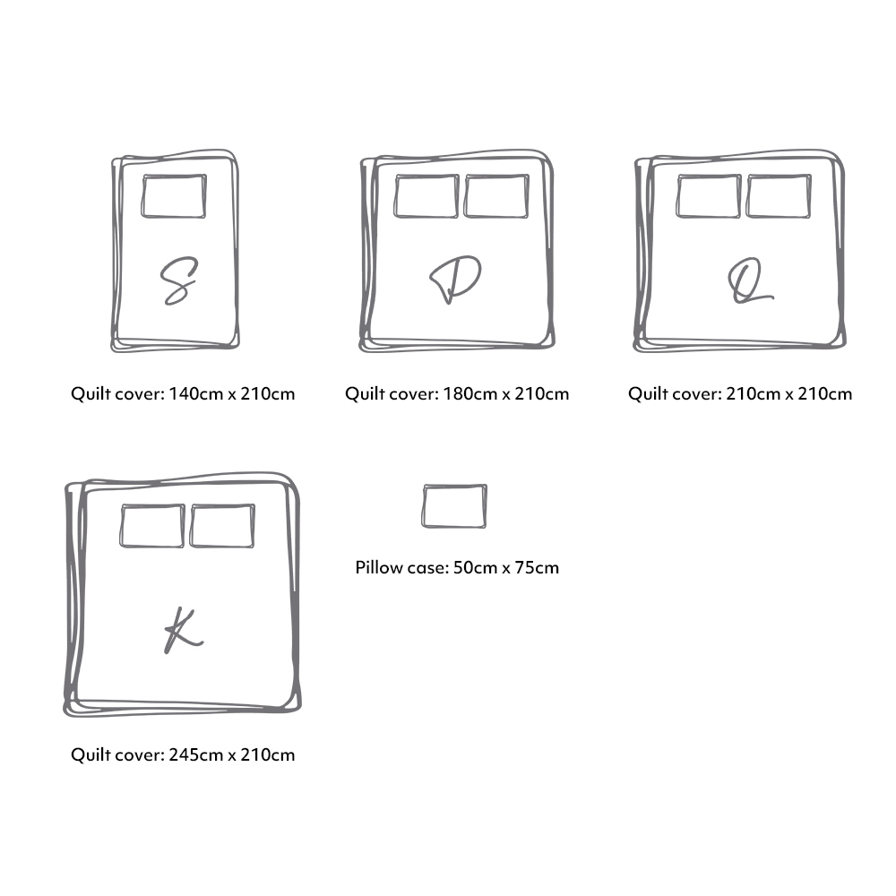 Single quilt cover: 140cm x 210cm