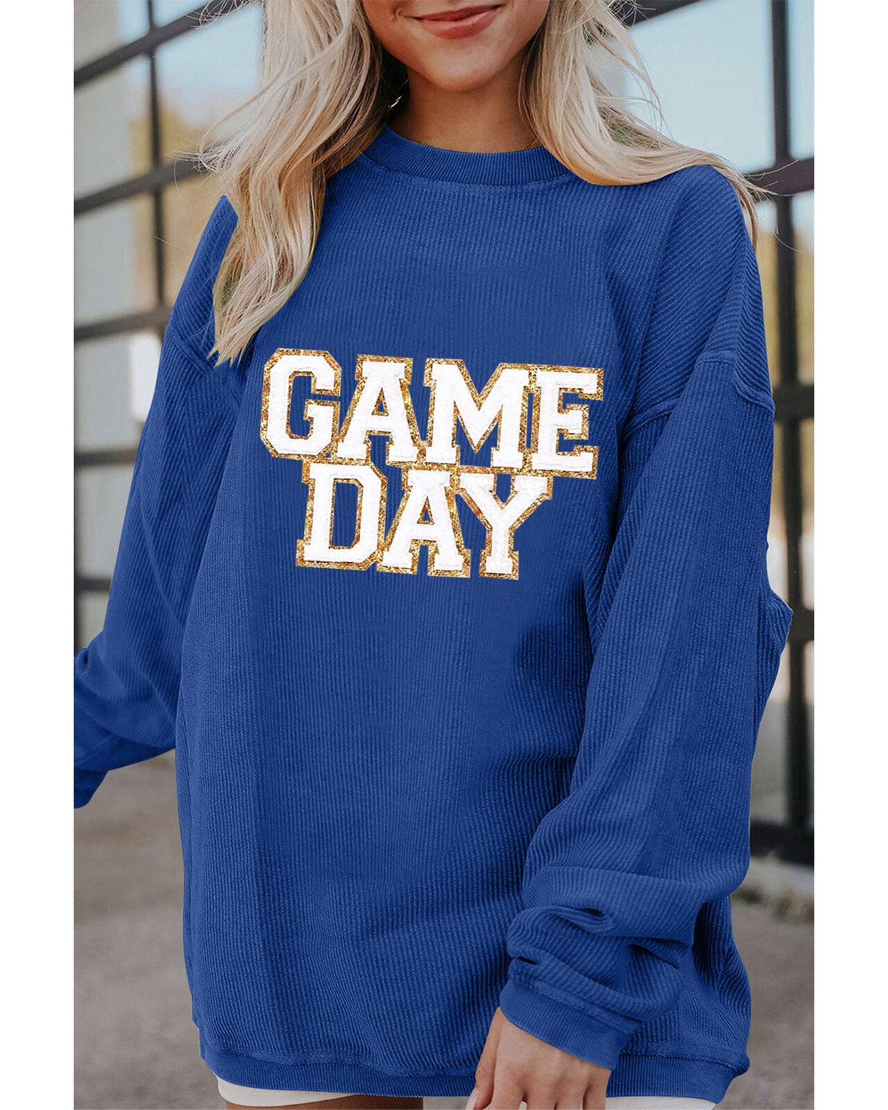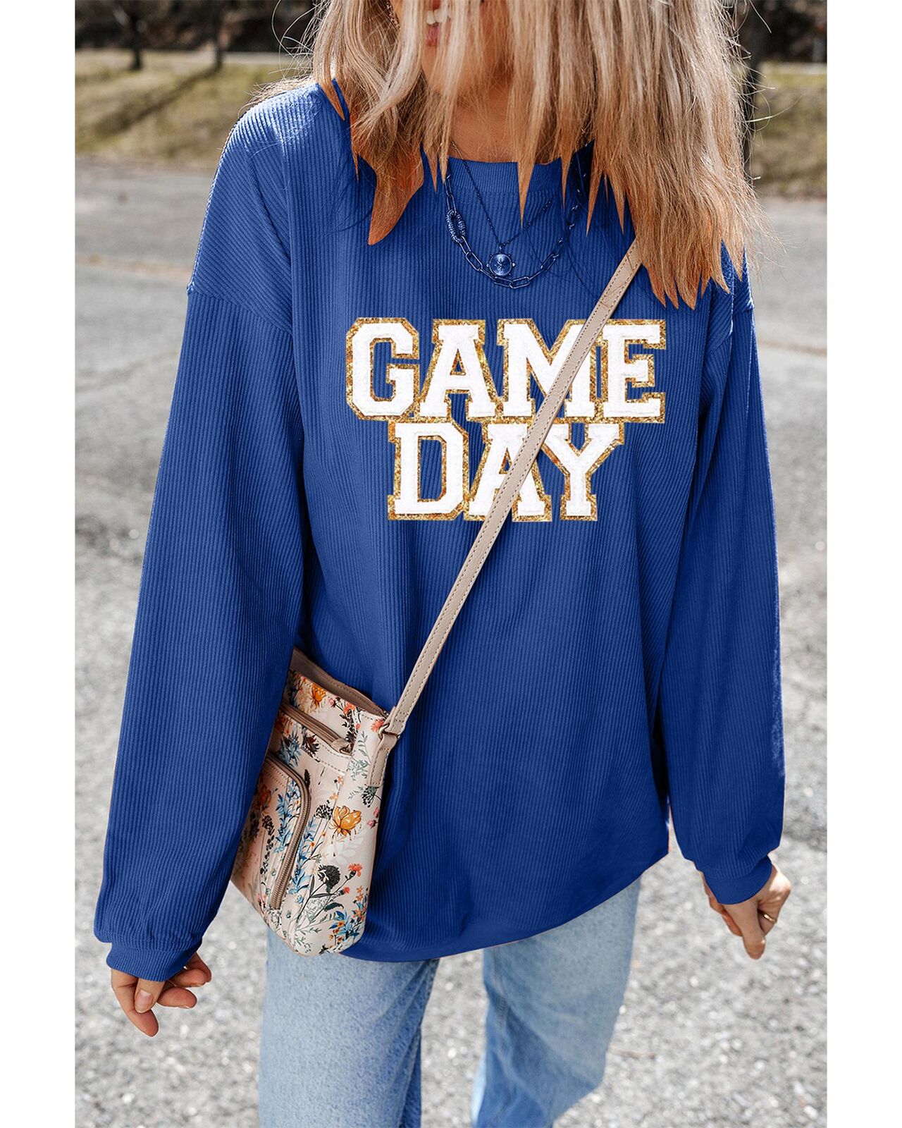 • Dark Blue GAME DAY Glitter Detail Ribbed Drop Shoulder Sweatshirt